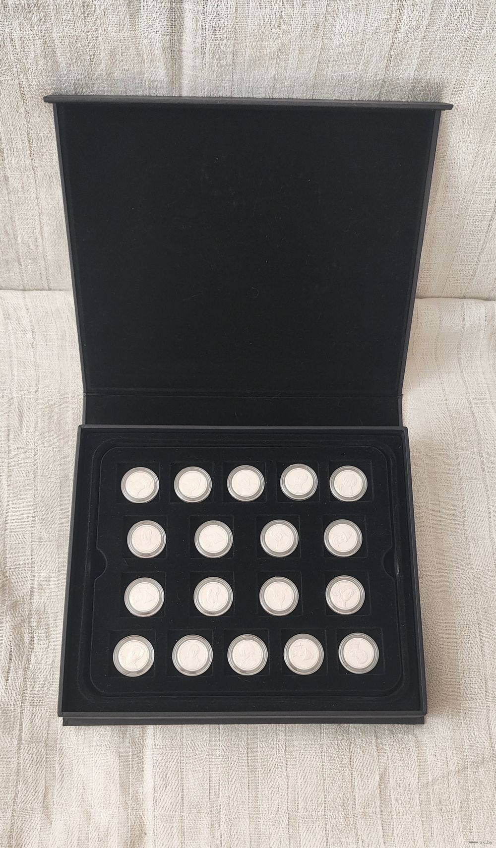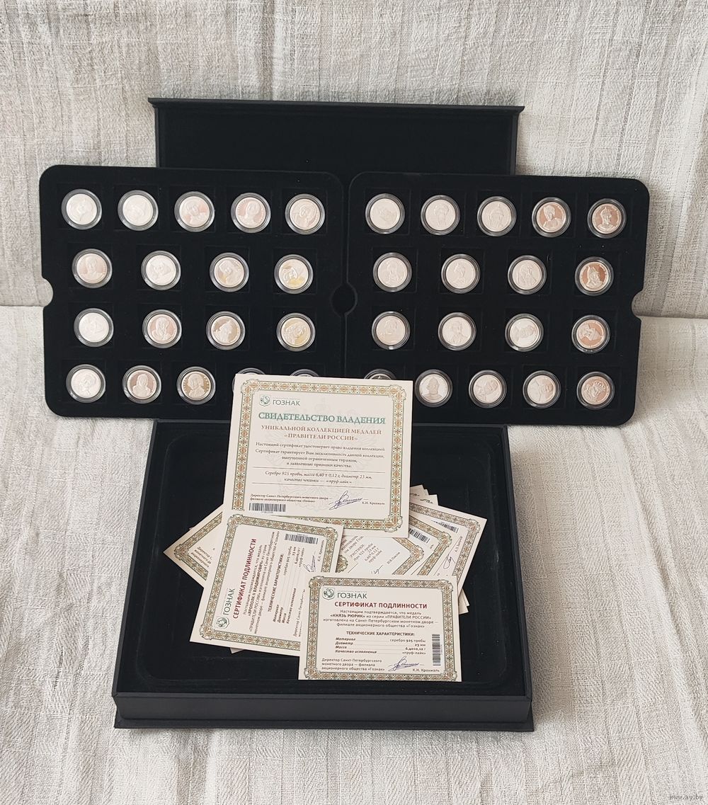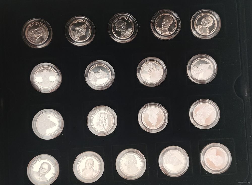 Состав лота: 36 серебряных медалей в индивидуальных капсулах, в футляре для хранения медалей.