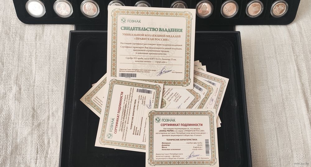 Сертификаты подлинности на медали и общий на владение коллекцией