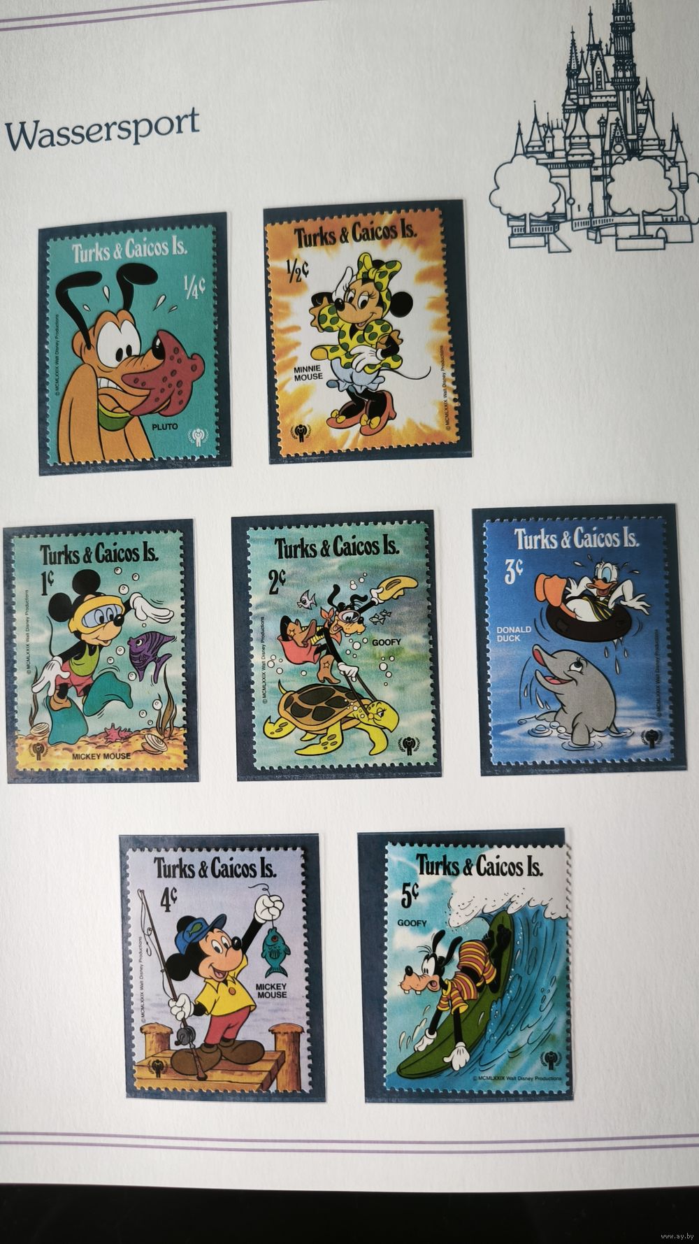Коллекционный набор марок: «Дисней на отдыхе — Водный спорт» Острова Теркс и Кайкос (Turks & Caicos Is.)