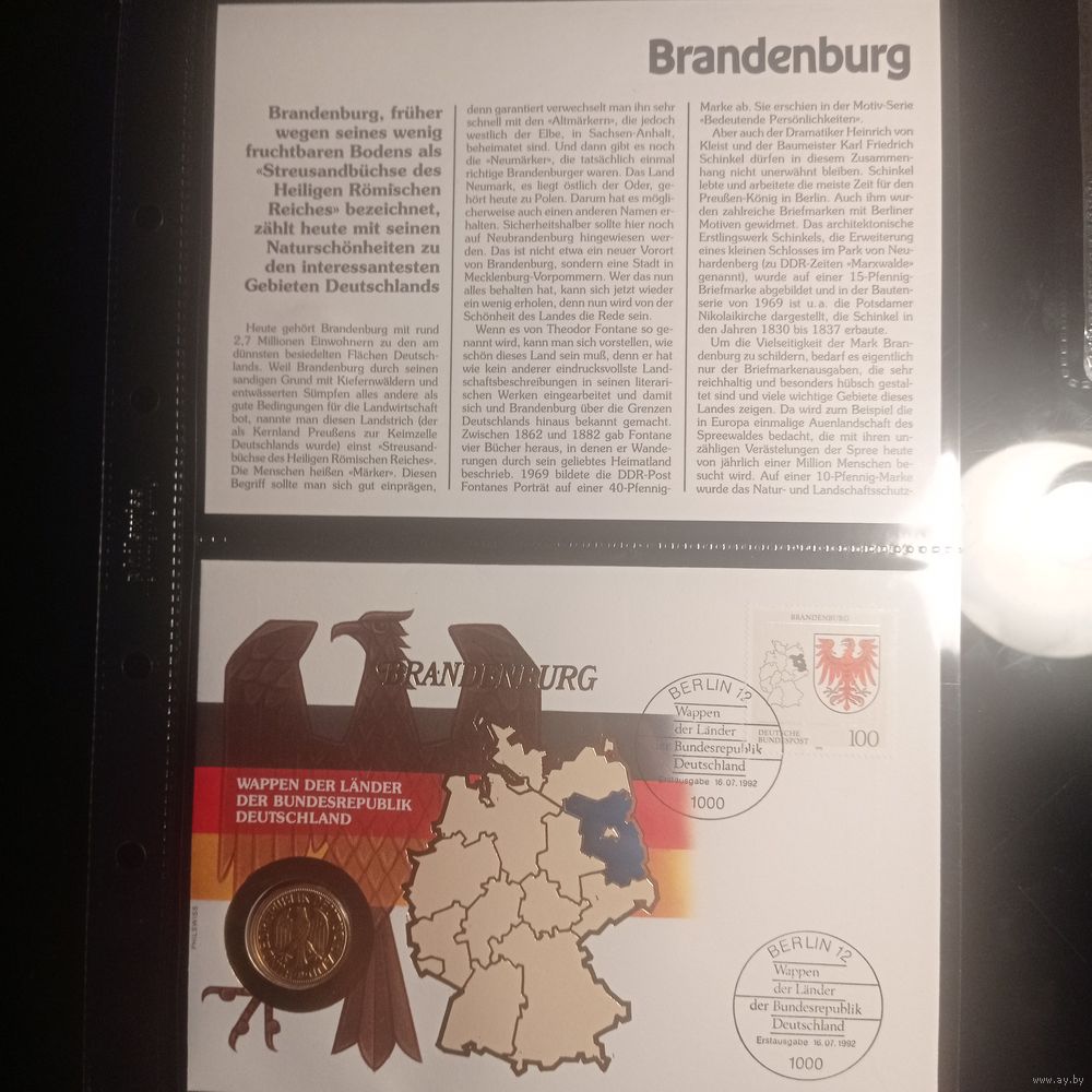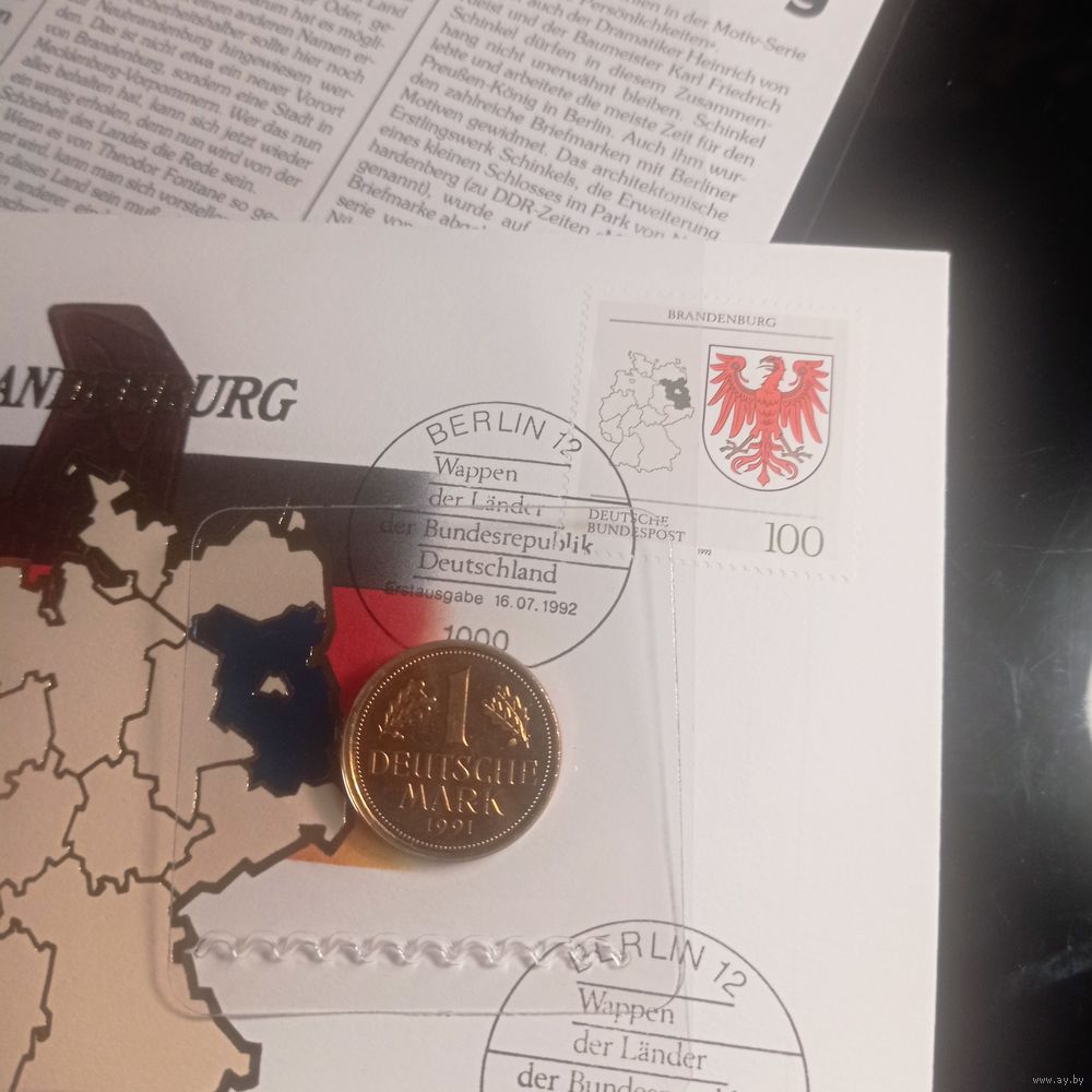 Почтовый штемпель: Berlin 12 – 16.07.1992 — дата выпуска, «Ersttagsbrief» (первый день обращения).