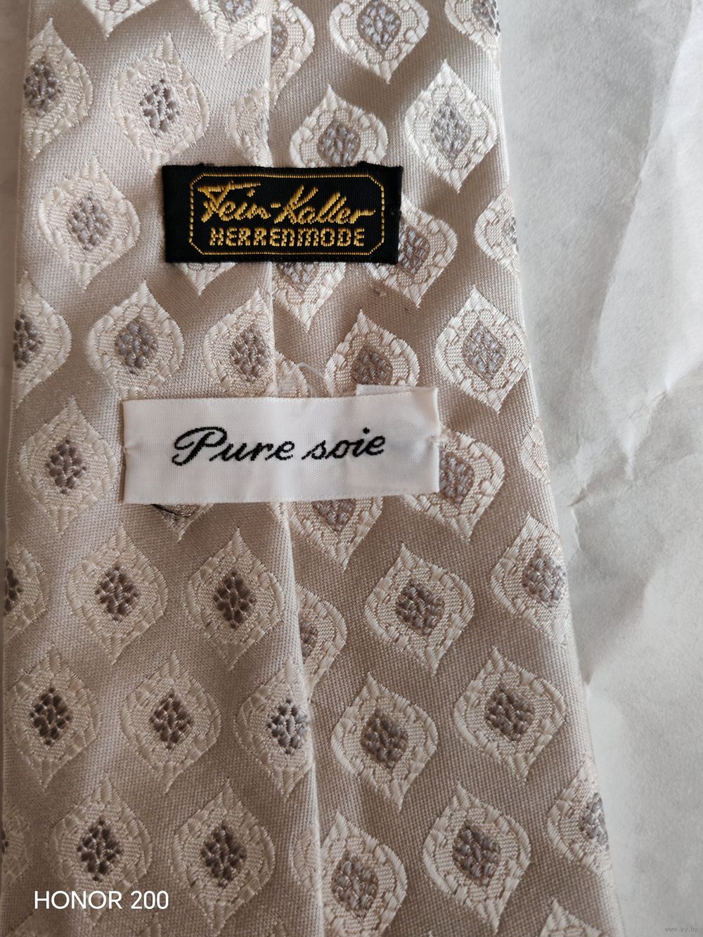 О бренде: Fein-Kaller — легендарный швейцарский дом мужской моды, основанный в 1895 году. Магазин на Банхофштрассе в Цюрихе был эталоном роскоши более века. После закрытия бренда в 2011 году его вещи стали редкими коллекционными объектами.