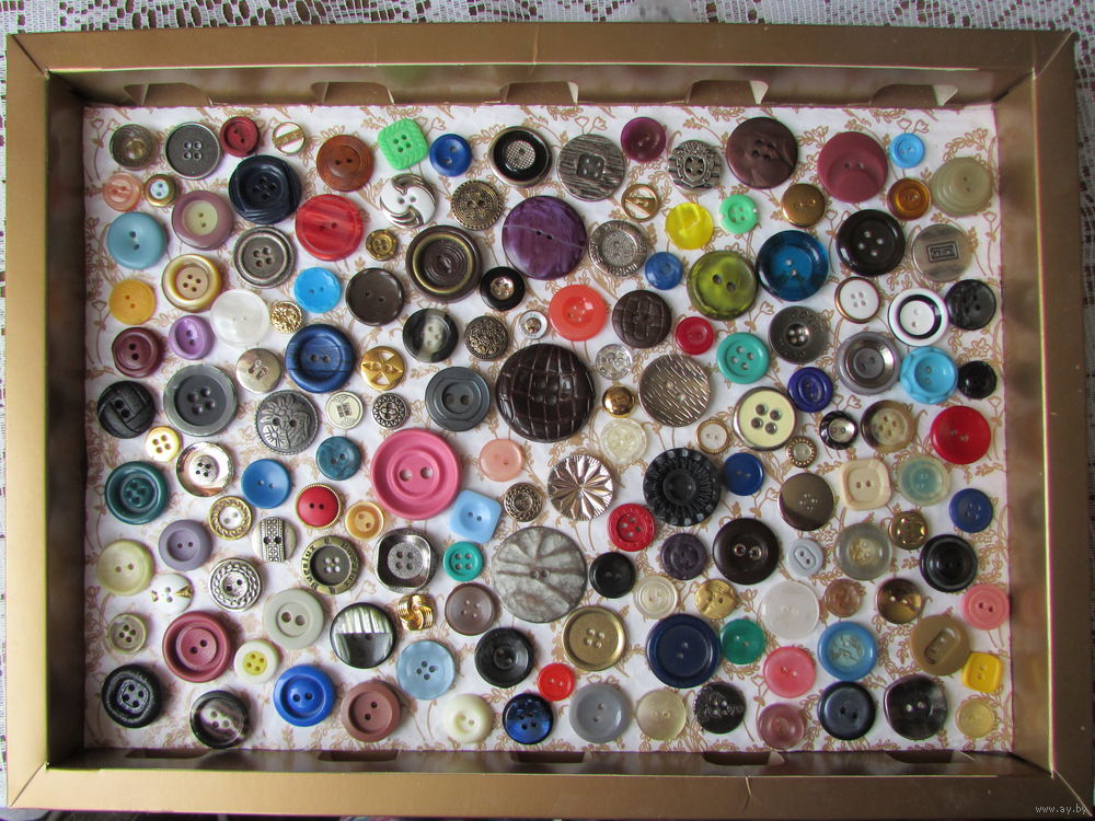 Диаметр от 38 до 12 мм, металл и пластмасса. Для портних и мастериц handmade. Можно сделать красивое панно.