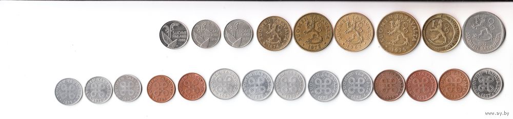 5 пенни 1957, 1963(3шт.), 1972, 1975, 1978, 1979, 1980, 1982, 1983 годы;