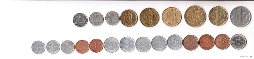 10 пенни 1974, 1990(3шт.), 1991, 1995 годы;