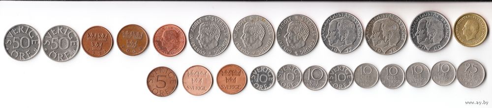 10 эре 1965, 1966, 1970, 1973(2шт.), 1980, 1984, 1985, 1986 годы;