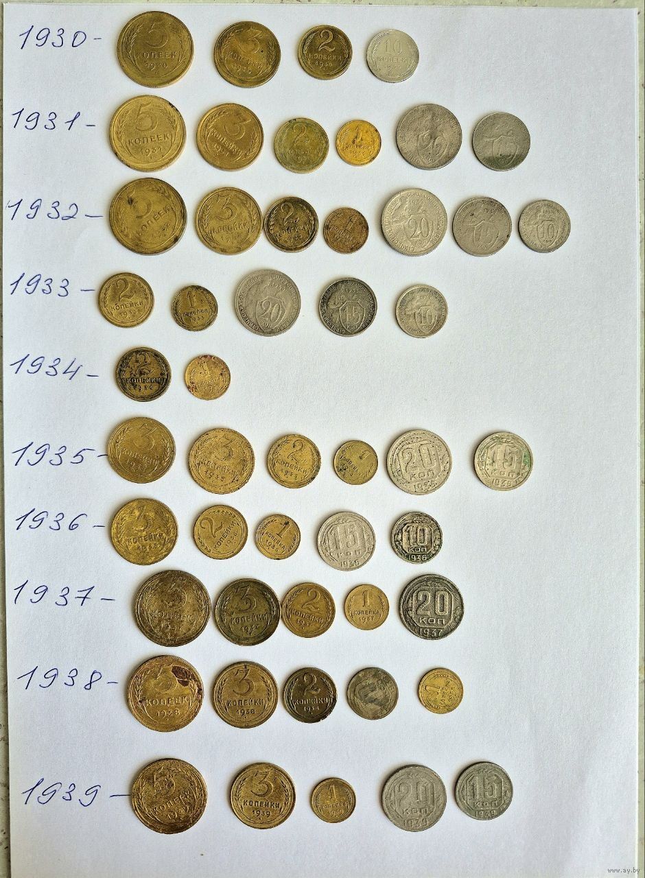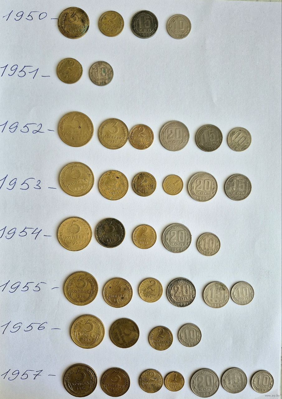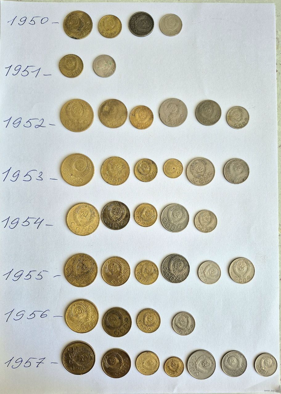 Начальная коллекция монет СССР ранних Советов 1923-1957 годов. 140 монет. Для начинающего. Основа есть, остальное надо собрать.