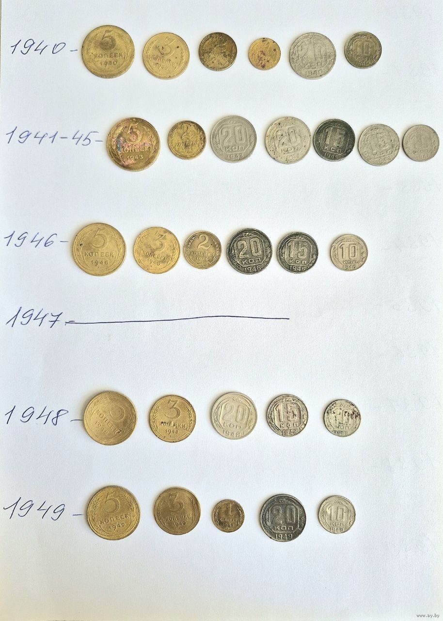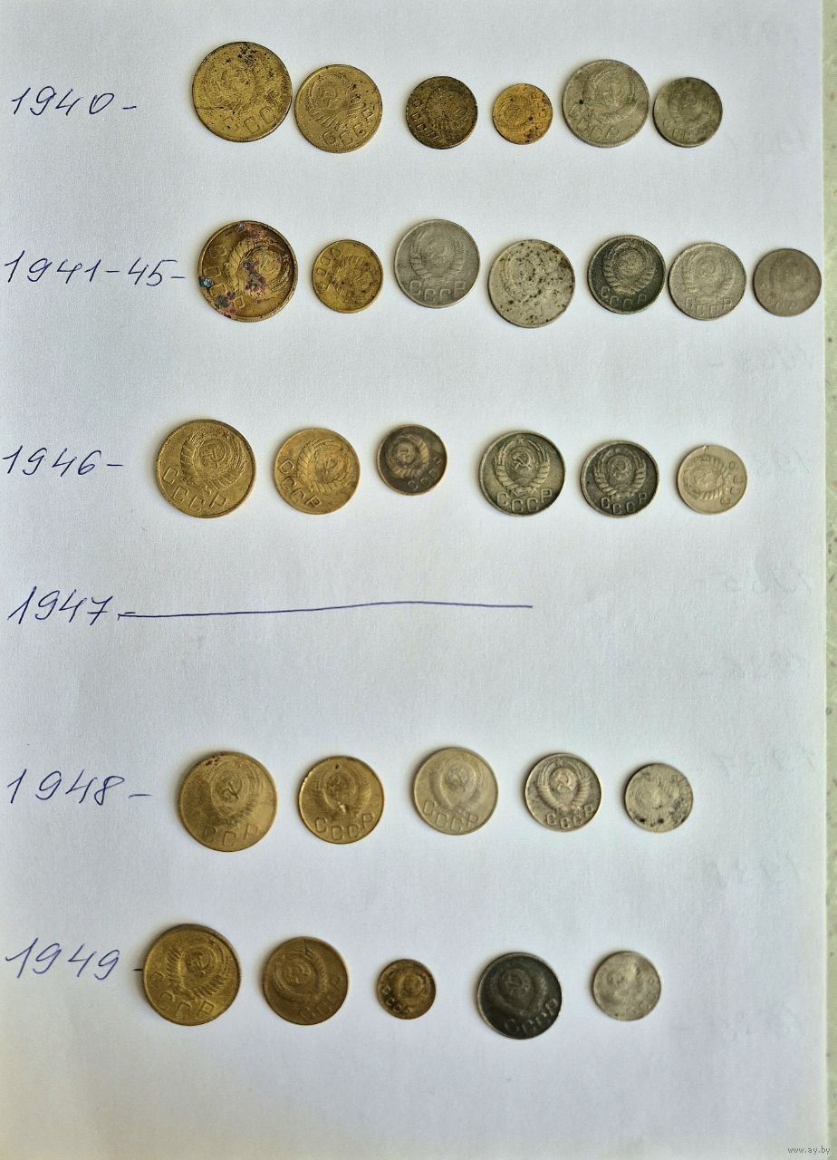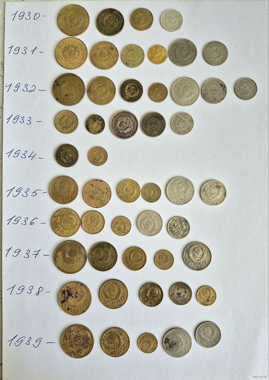 Начальная коллекция монет СССР ранних Советов 1923-1957 годов. 140 монет. Для начинающего. Основа есть, остальное надо собрать.