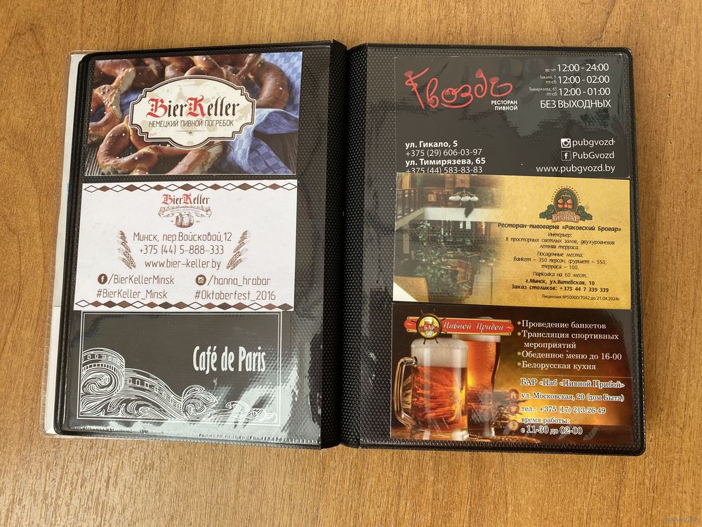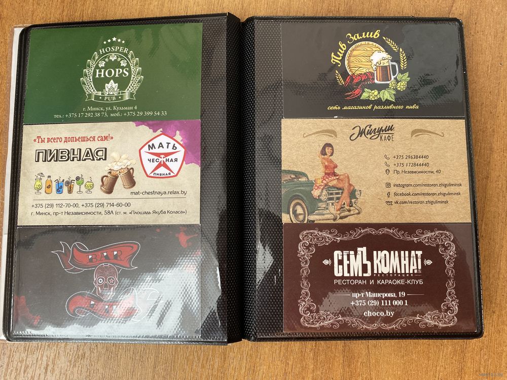 Пока собиралась коллекция многие бары переименовали, либо закрыли, либо поменяли дизайн визитки. Перед вами - история питейных заведений г. Минска. Отличное приобретение для коллекционеров пивной атрибутики. Без повторов 87 штук в альбоме. Цена за всё!