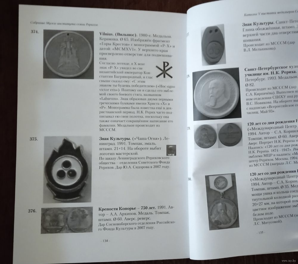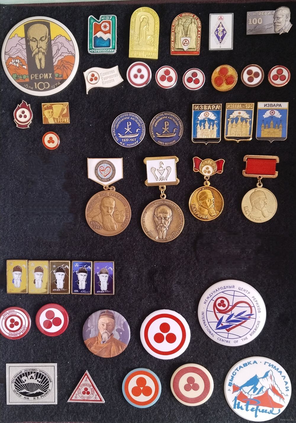 Коллекция значков по теме "РЕРИХИ" (54 штуки) в хорошем состоянии + каталог выставки медальеров в Санкт-Петербурге.