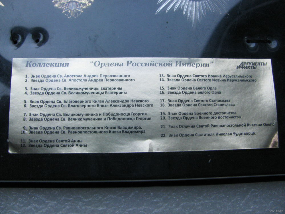 Коллекция знаков АиФ. Ордена Российской империи. на планшете. тяжёлые, 22 шт.