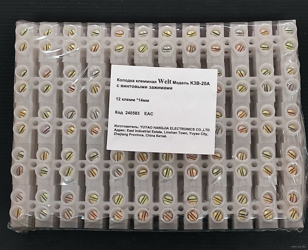 Колодка клеммная 12 клемм 14мм.кв, КЗВ-20А