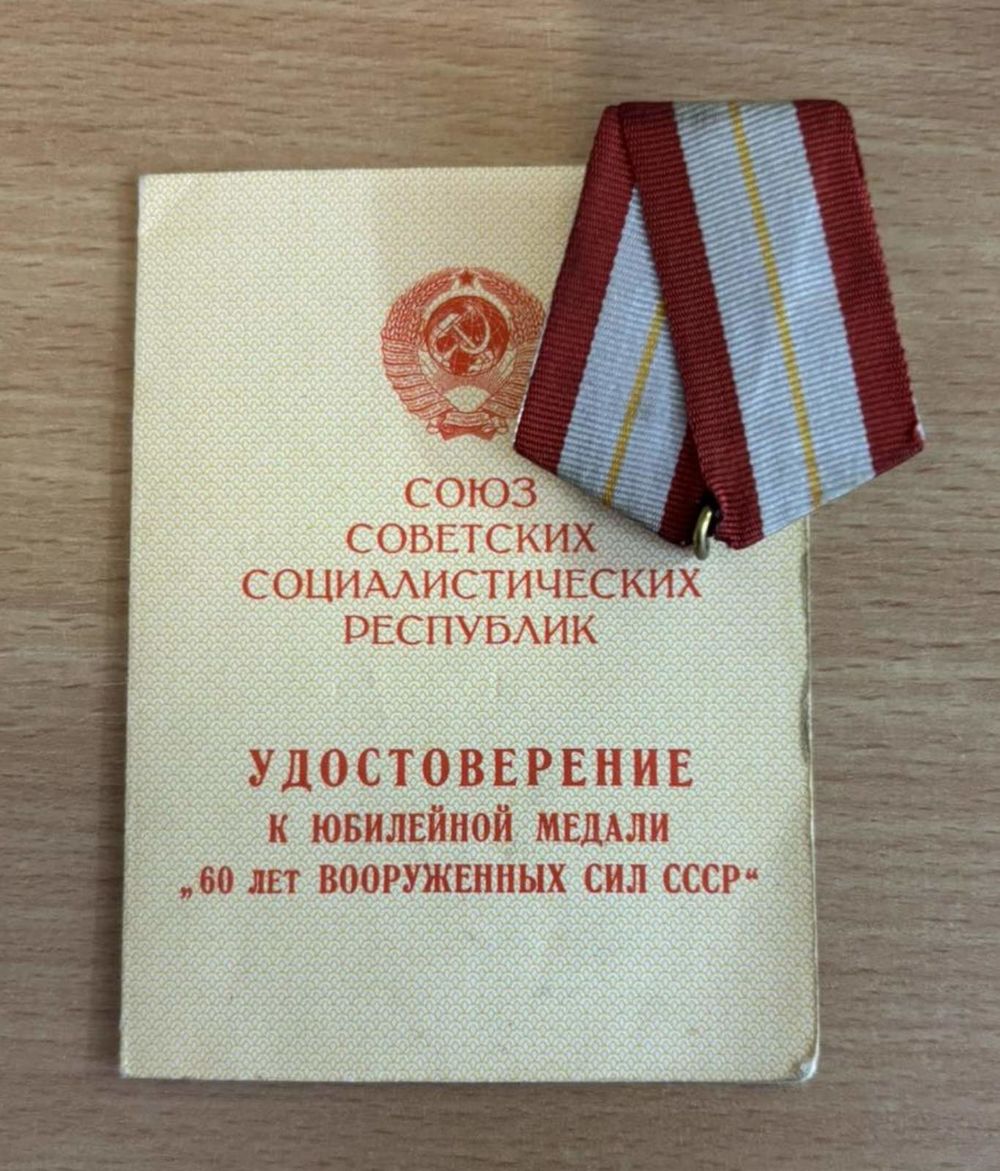КОЛОДКА С ПРОМЗВЕНОМ К ЮБИЛЕЙНОЙ МЕДАЛИ (60 ЛЕТ ВС СССР) + УДОСТОВЕРЕНИЕ!!!