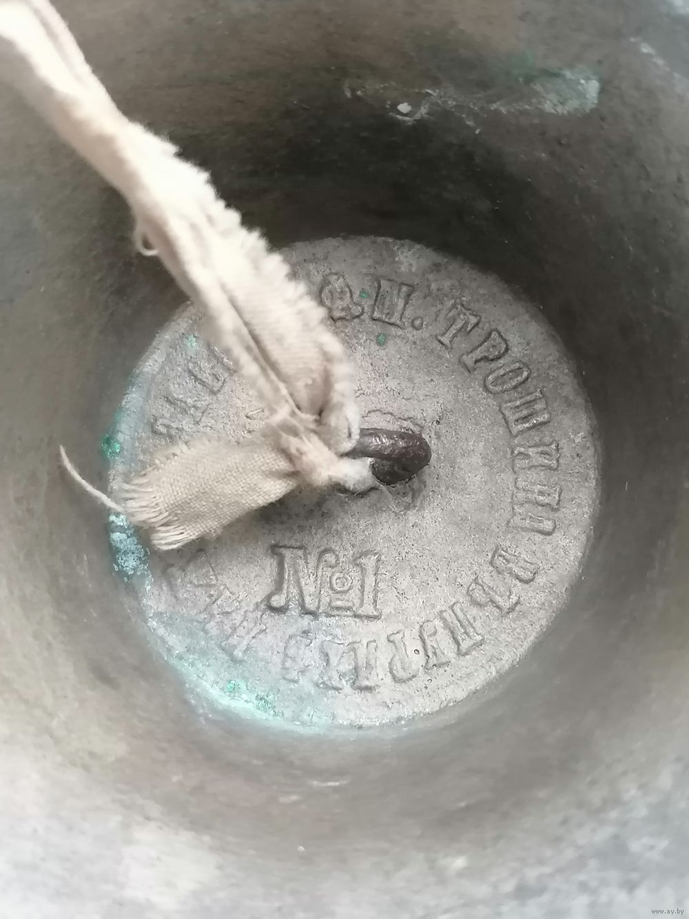 В хорошем состоянии. Без сколов и трещин. Языка нет, вместо него шайба