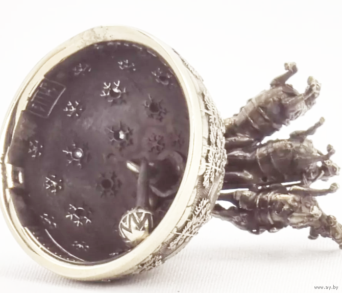 Высота около 4 см., Ширина около 4,3 мм. Белая бронза. Вставки - фианиты. Отличная детализация.