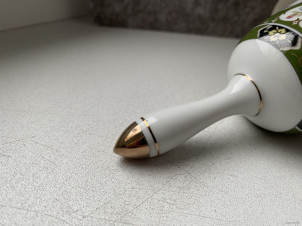 Правый - один скольчик по ободку, один по грани снаружи, см. по фото, без трещин, высота - 12,5 см (керамика)