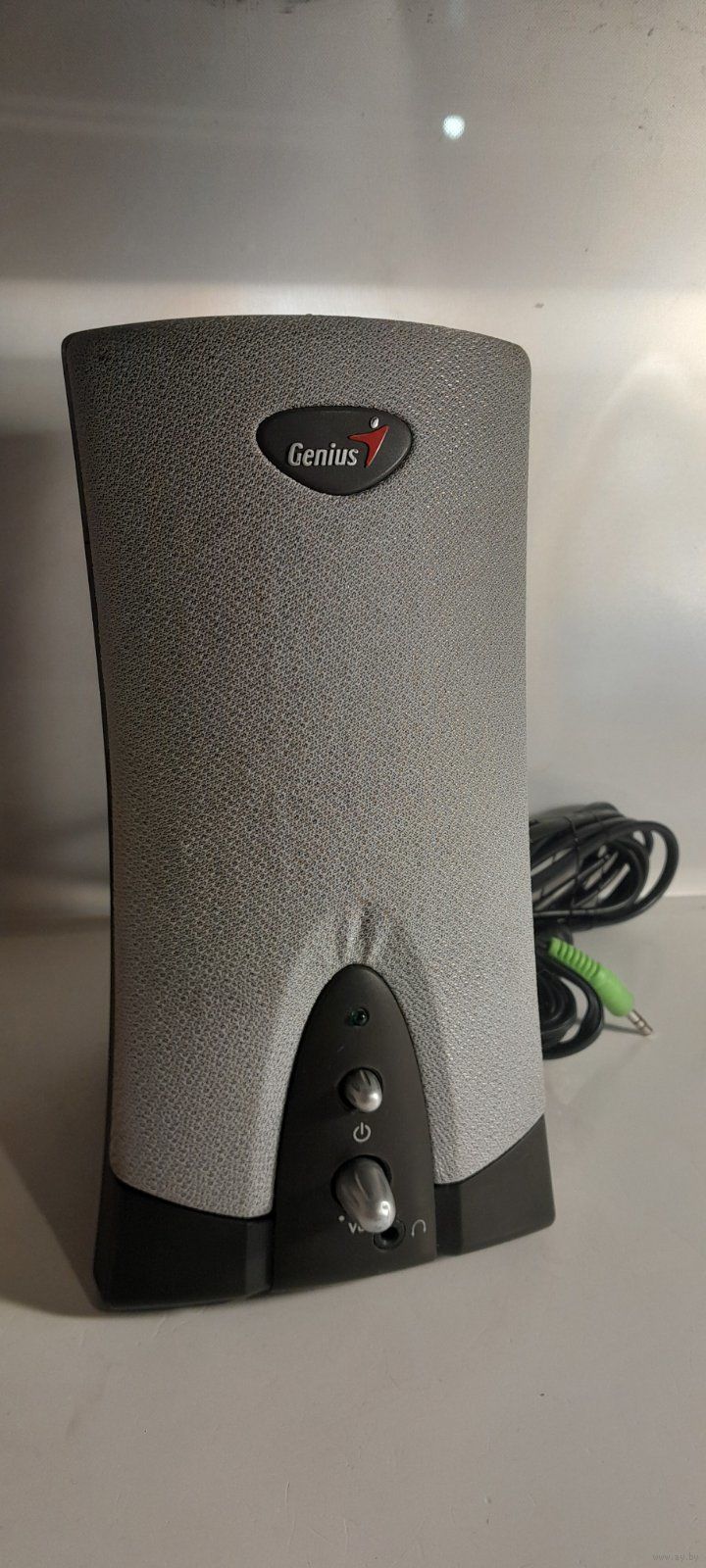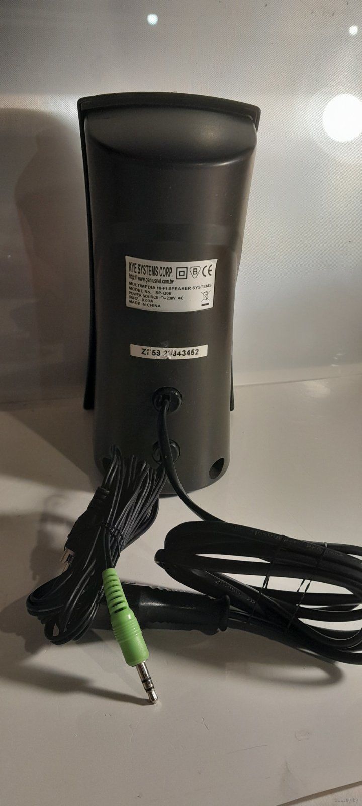 Рабочая, динамик целый. Немного поцарапан корпус. Вход джек, выход тюльпан.