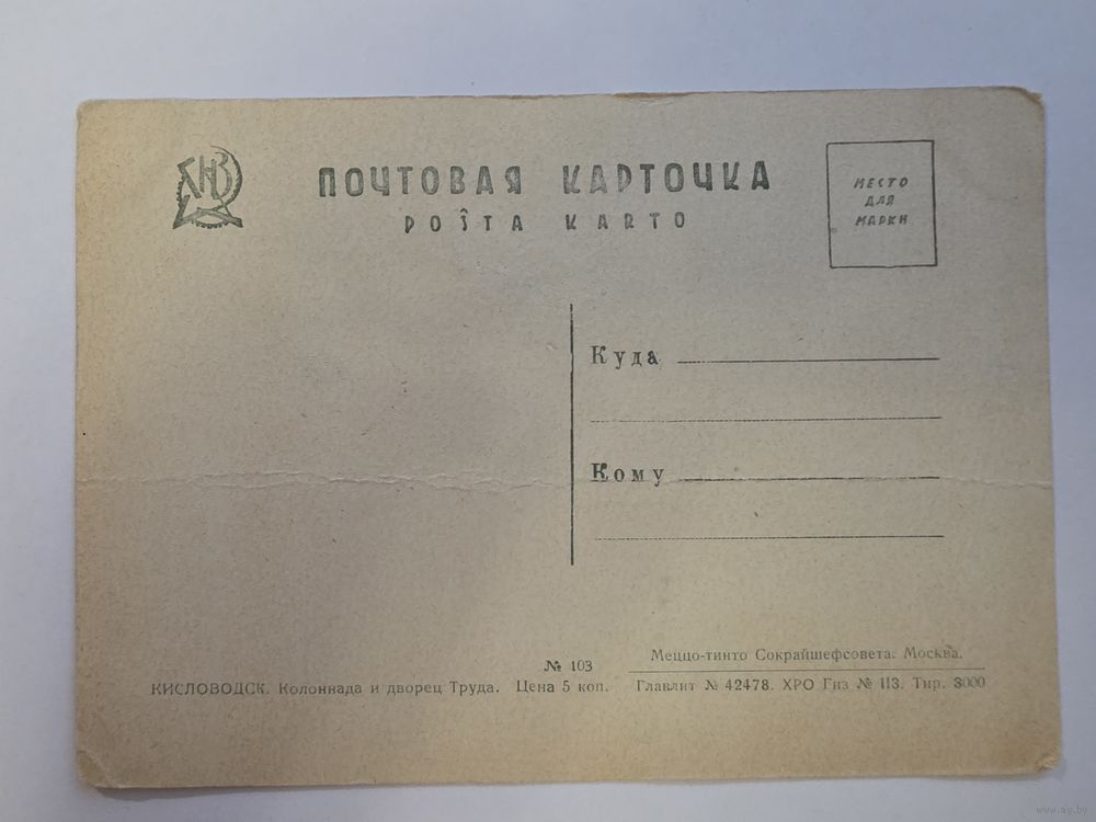 Колоннада и дворец Труда. Кисловодск. Чистая. Почтовая карточка 1920е - 1930е годы.Общий вид.