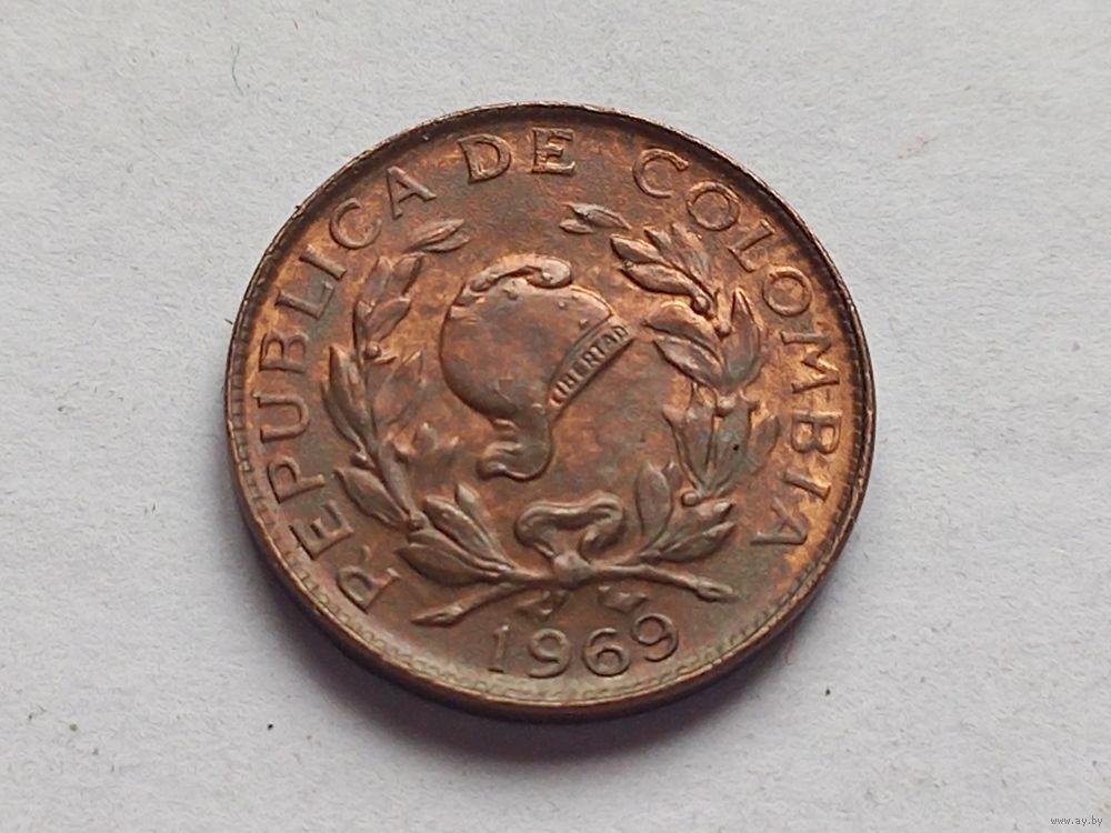 Колумбия 1 сентаво 1969 г. Брак ( раскол штемпеля )