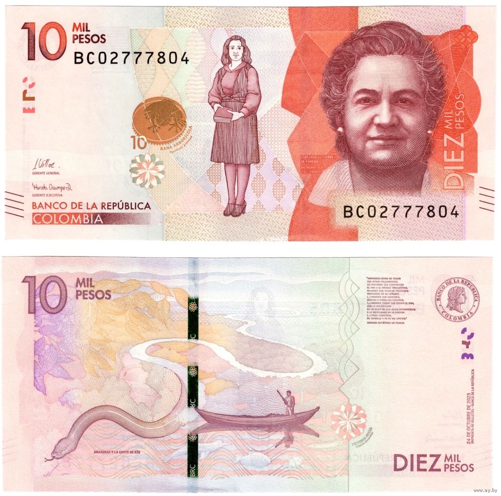 Колумбия 10000 песо образца 2023 года UNC p460 серия ВВ