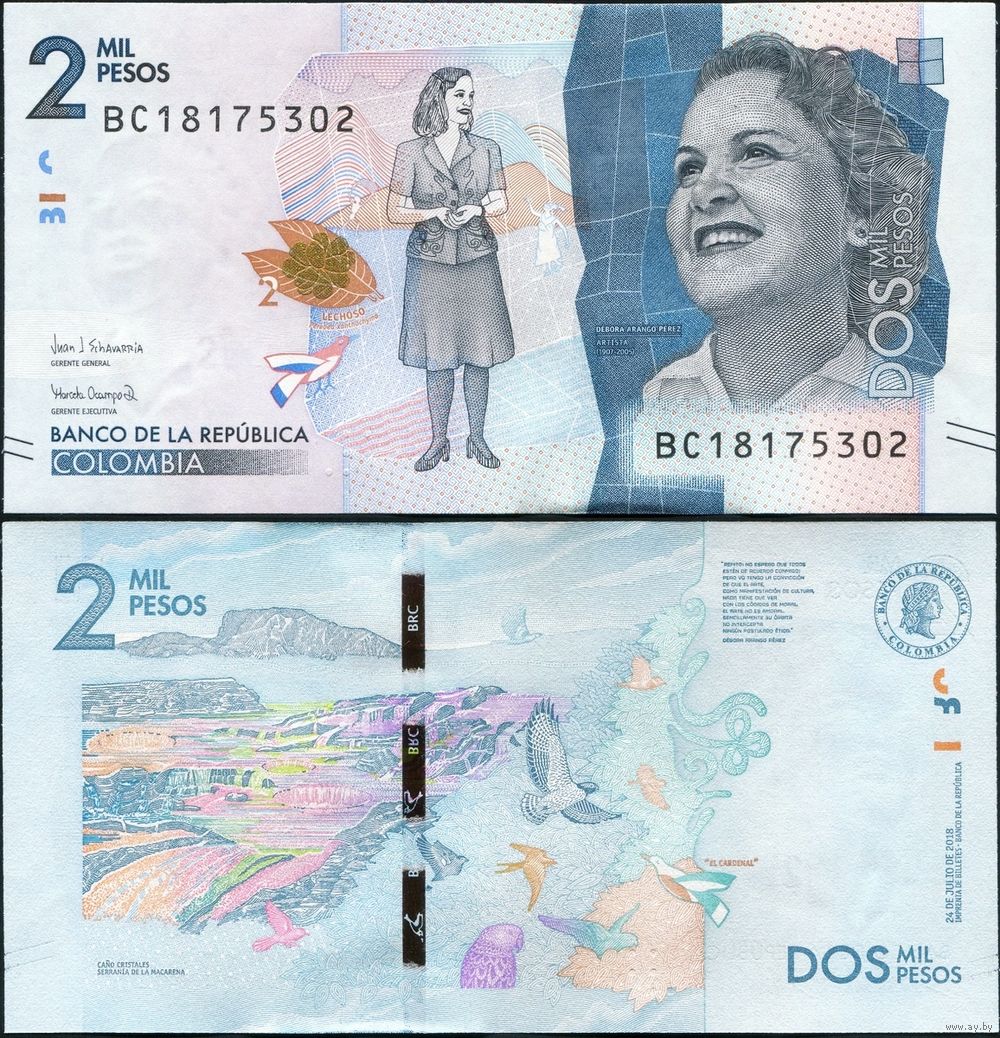 Колумбия 2000 песо образца 2018 года UNC p458 серия ВВ