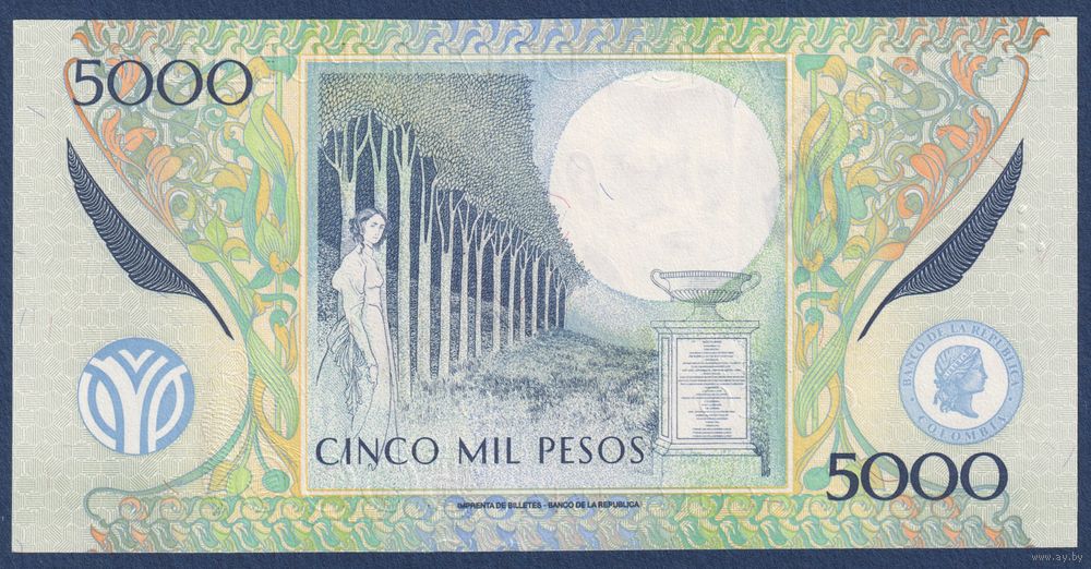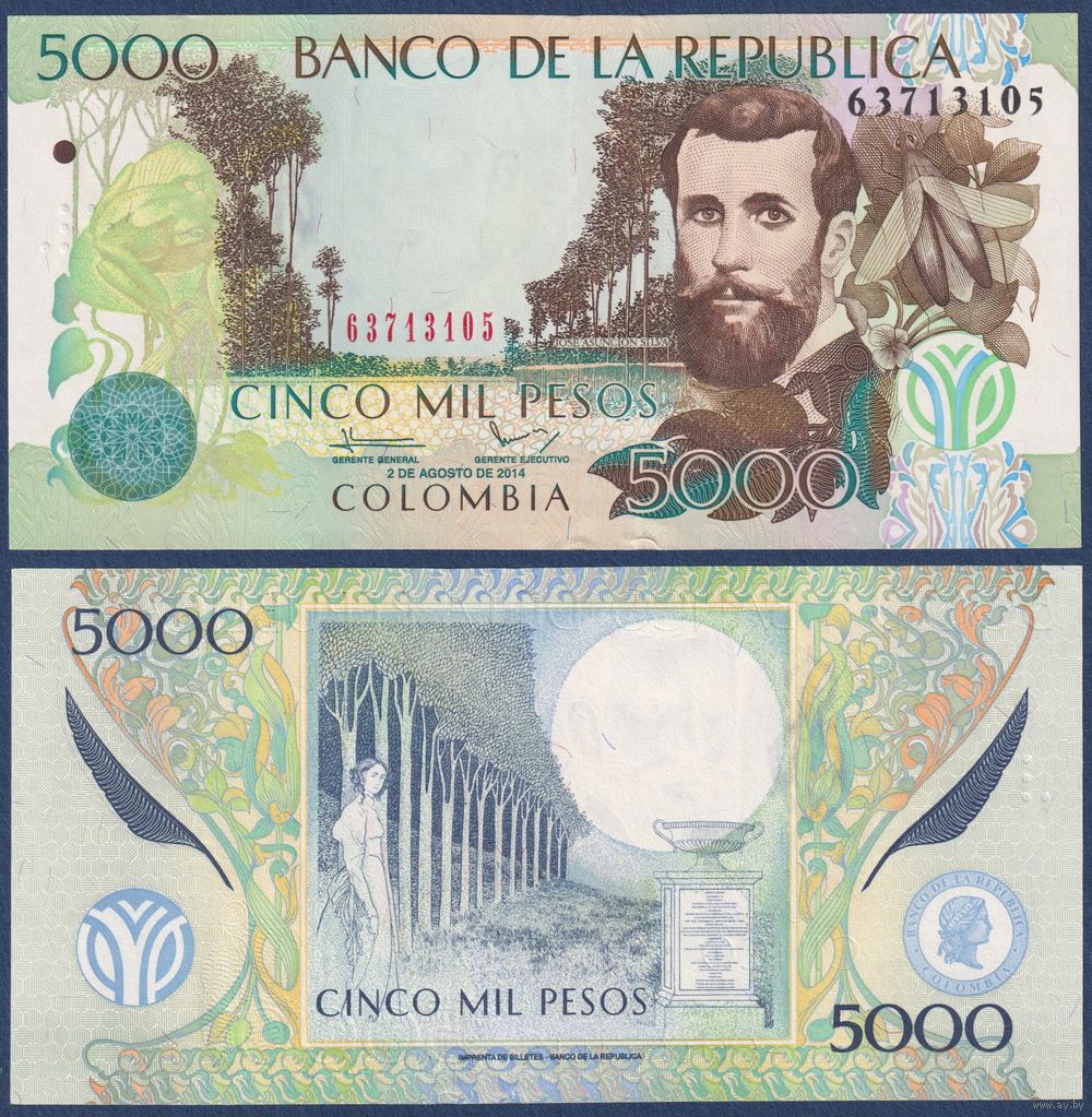 Колумбия, 5000 песо 2014 г., P-452q (поэт-романтик Хосе Асунсьон Сильва), UNC
