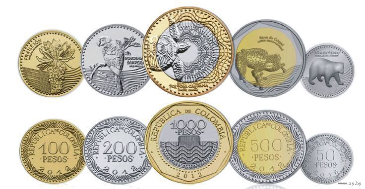 Колумбия набор монет 50, 100, 200, 500, 1000 песо, UNC. Медведь. Попугай. Жаба. Морская черепаха. Сторгуй за свою цену, предложи обмен!