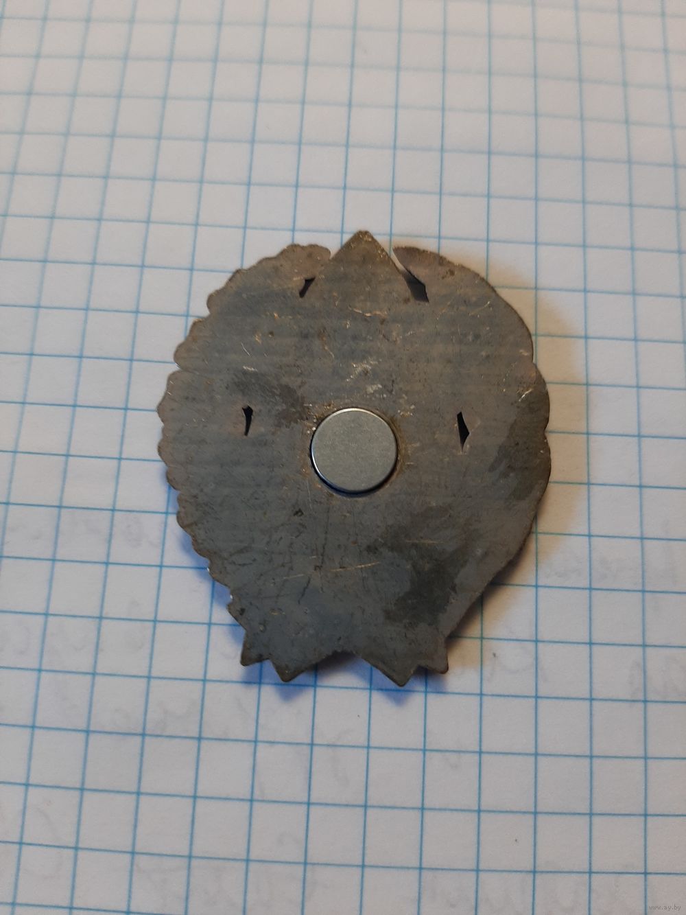 Тяжёлый метал, эмали. По сути, сделан как магнит на холодильник.