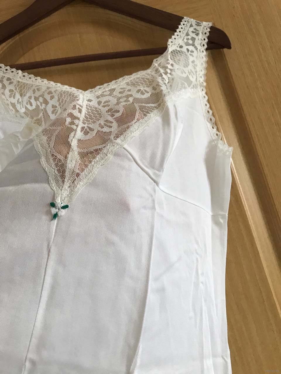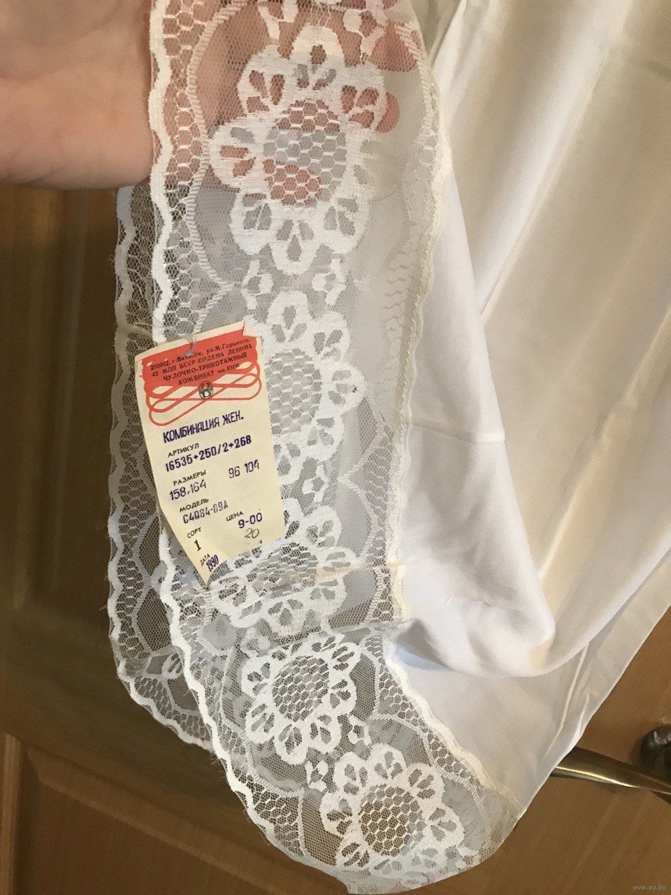 Элегантная комбинация родом из СССР (Витебск) белая 164, 96-104, с широким кружевом по линии декольте и низу.