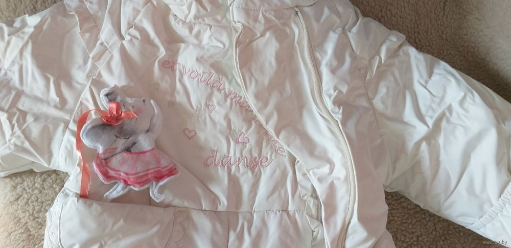 Комбинезон белый (Бимоша) для девочки (рост 68, обхват груди-44см), непромокаемый и непродуваемый, внутри баечка, очень теплый, демисезон.