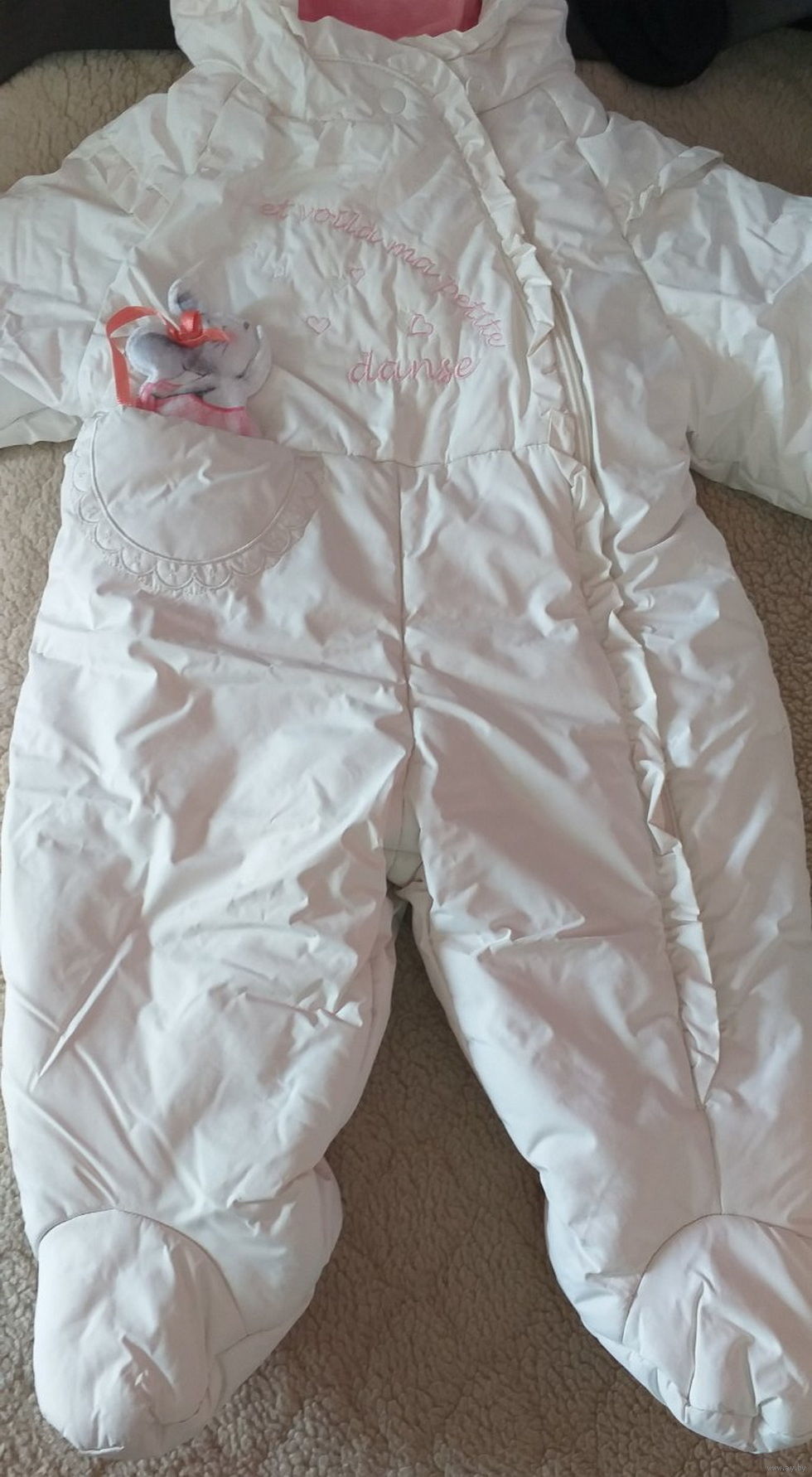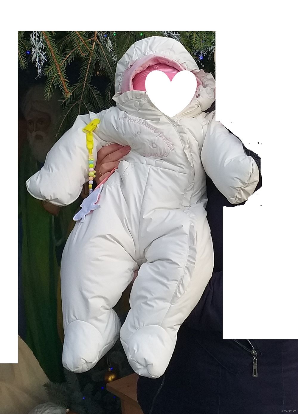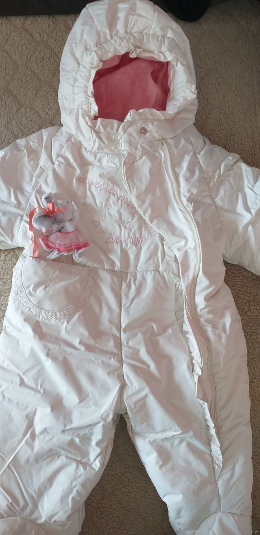 Комбинезон белый (Бимоша) для девочки (рост 68, обхват груди-44см), непромокаемый и непродуваемый, внутри баечка, очень теплый, демисезон.