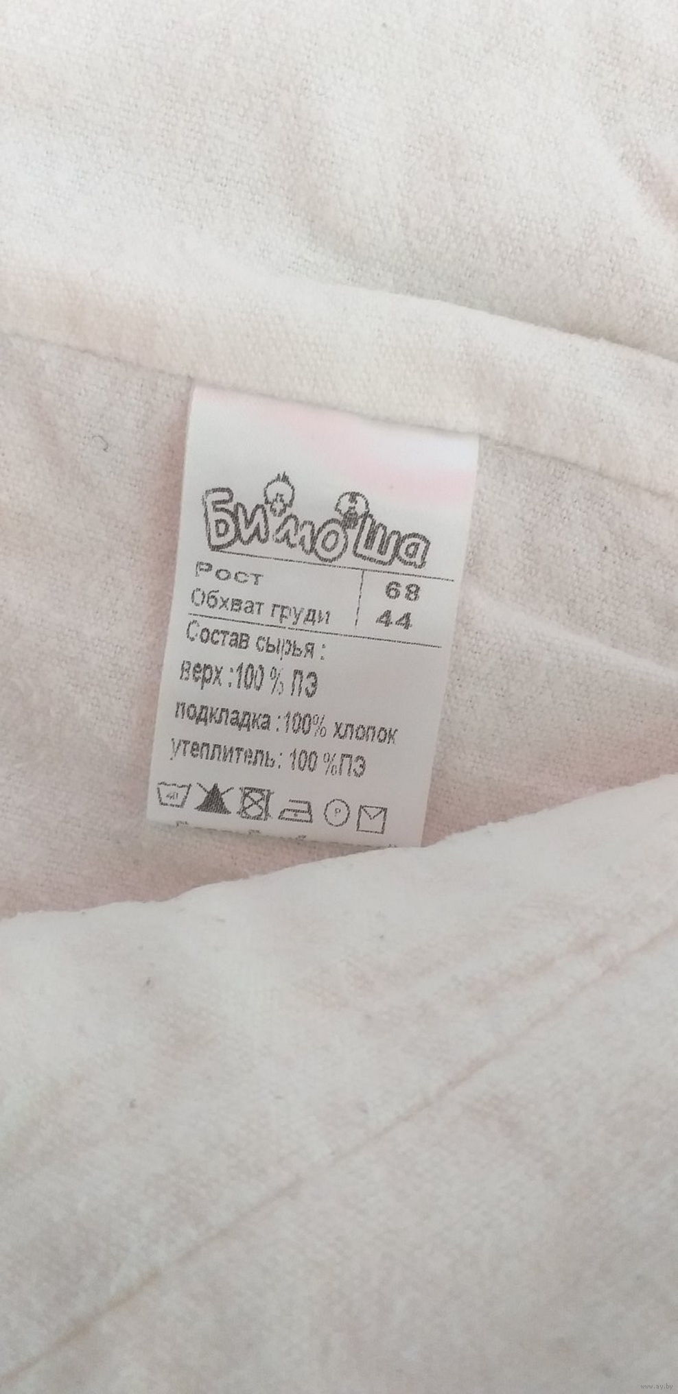 | Размер | 62-68 см (3-6 месяцев), 68-74 см (6-9 месяцев) |