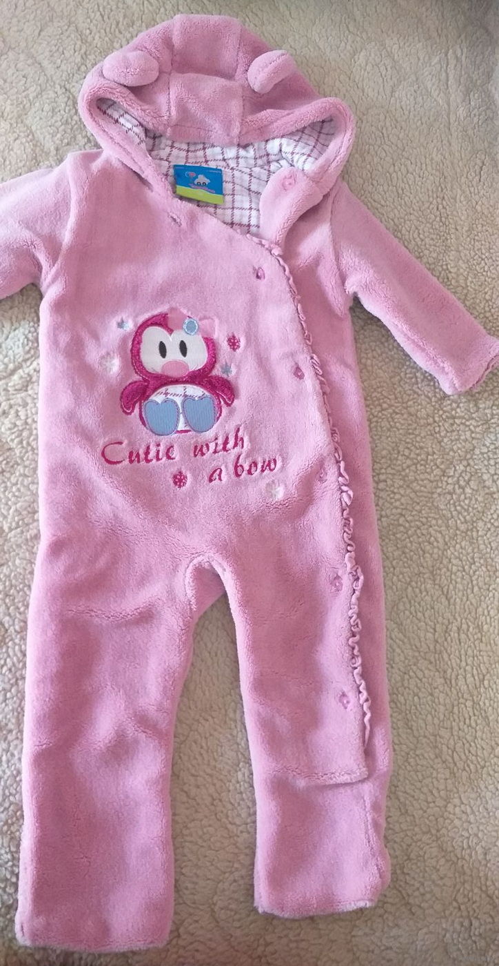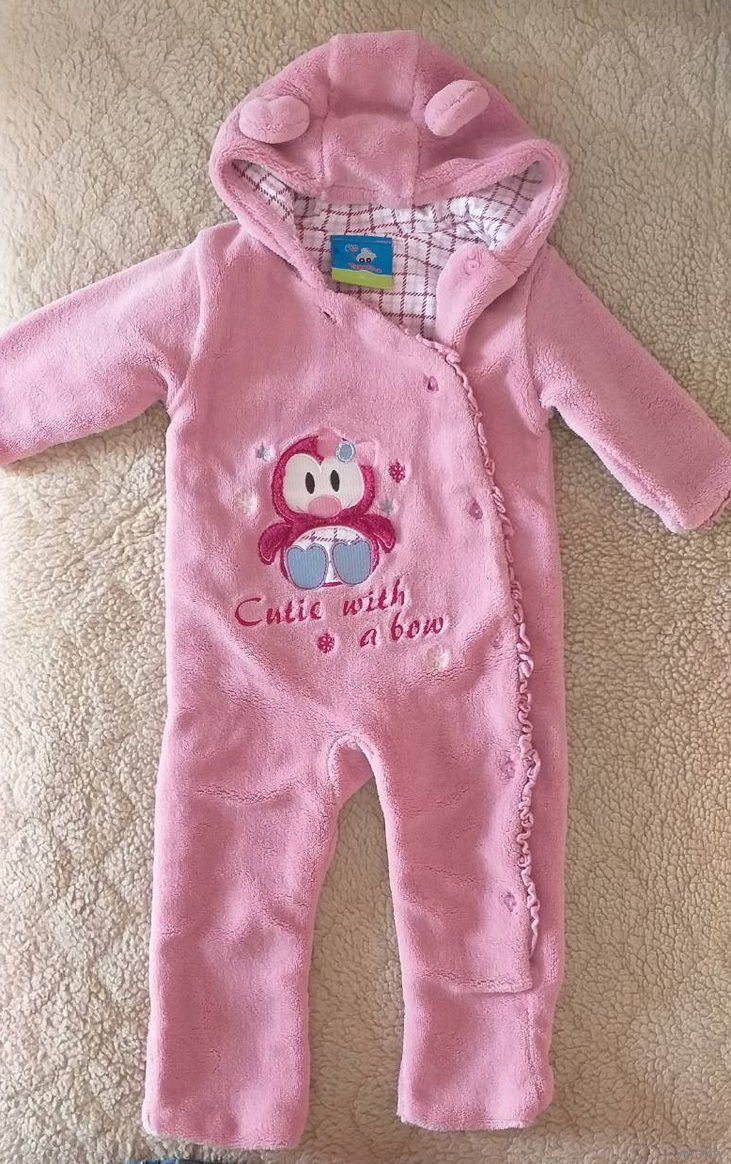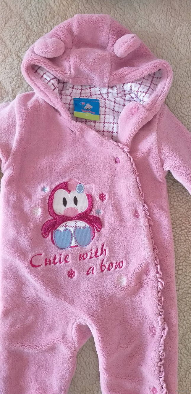 Комбинезон c капюшоном розовый, р.56 (1-3мес), б.у в отличном состоянии, Topolino, длина изделия-61см.