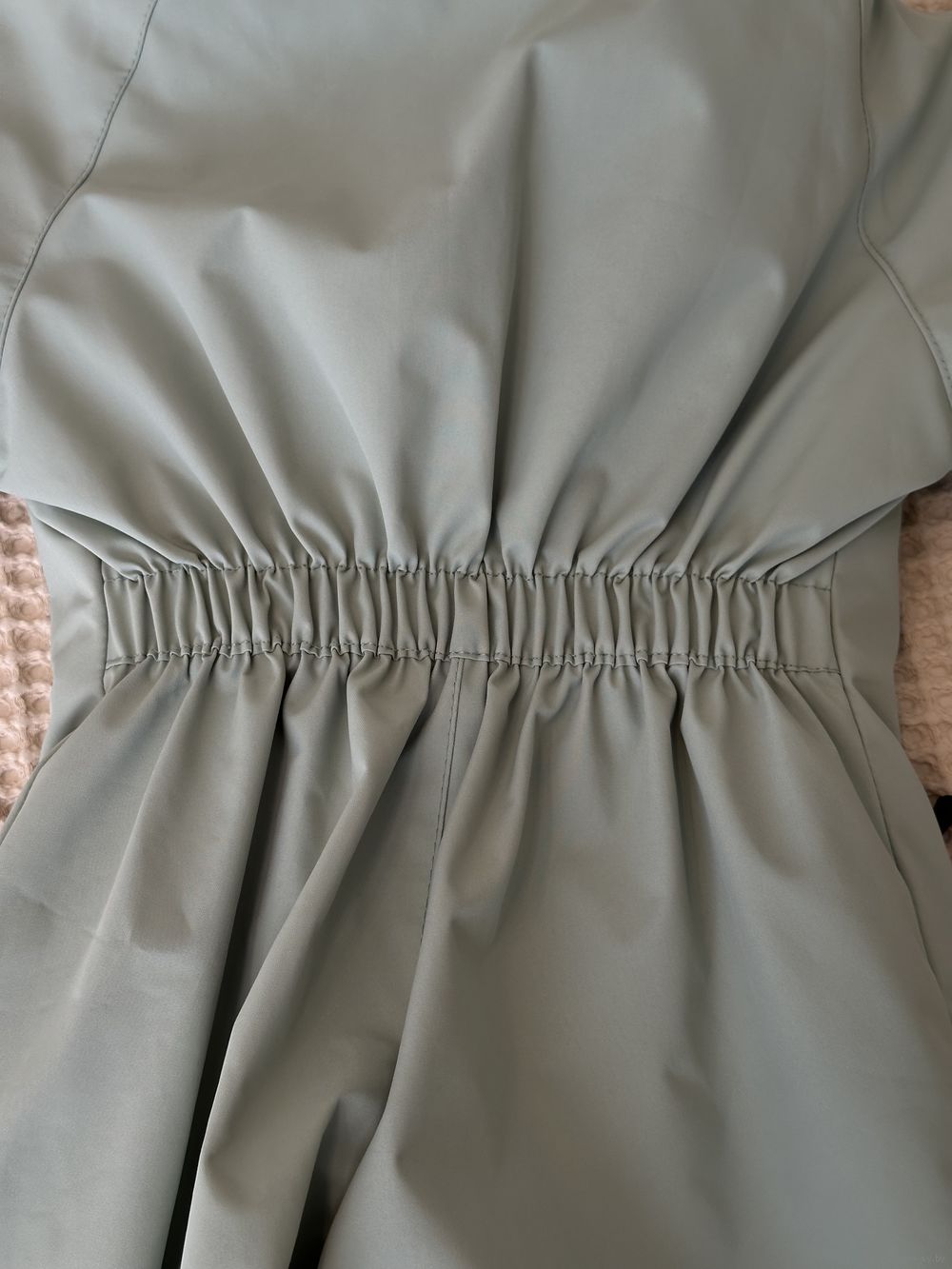Демисезонный, мягкая подкладка сверху, аккуратные кармашки. Замки с резиночками,
