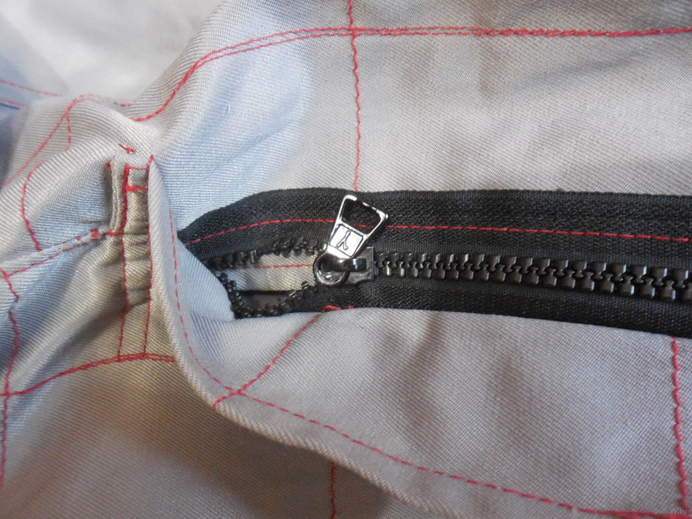 Примерно. размер 50-52 рост 180. ПЭ-65% , ХБ-35% отсутствует пару зубьев в молнии (фото) Не использовался.