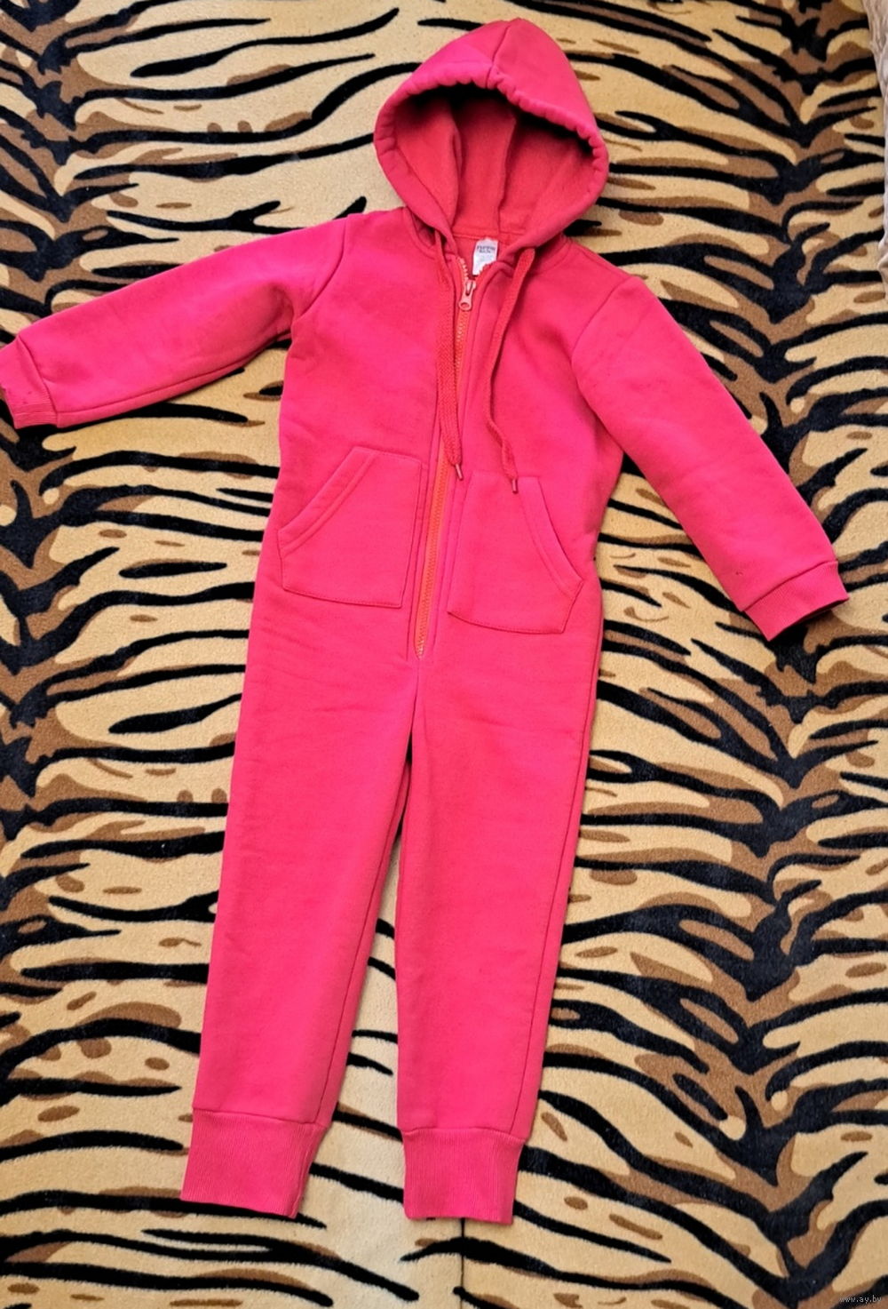 Комбинезон малиновый демисезонный, р.104 (4-5лет), б.у в отличном состоянии, 80%-хлопка, 20%-полиэстера, рекомендована стирка при t не более 40С, П/о груди-34см, длина изделия-86см, длина рукава-35см.
