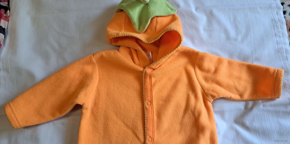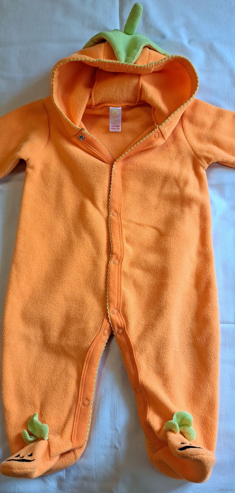 Комбинезон оранжевый Тыковка, демисезонный на 6-9мес (р.63-74), б.у в хорошем состоянии, длина от плеча до пятки-61см, длина рукава-23,5см.