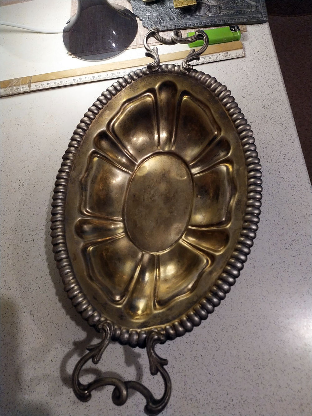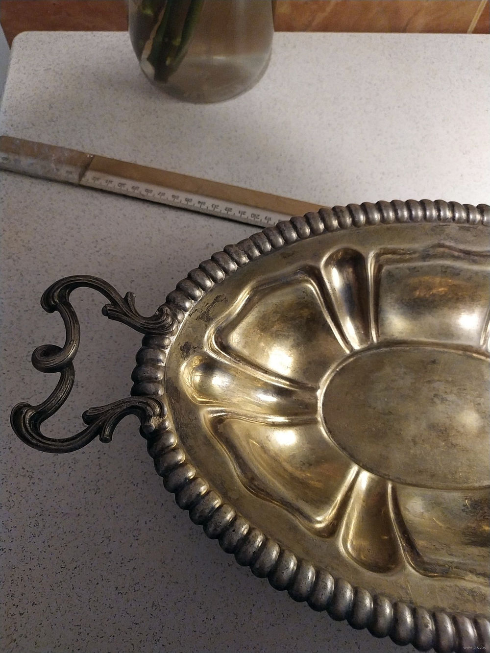 Комфетница. Фруктовница Российская империя клеймо . Латунь серебрение Фраже Варшава 40 см.