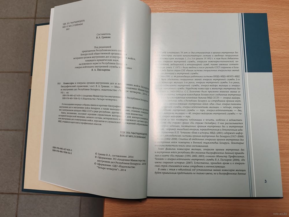 Под редакцией Председателя Республиканского Совета Белорусской Общественной Организации Ветеранов ОВД и ВВ генерал-лейтенанта Внутренней Службы в отставке В.А. Пискарёва.