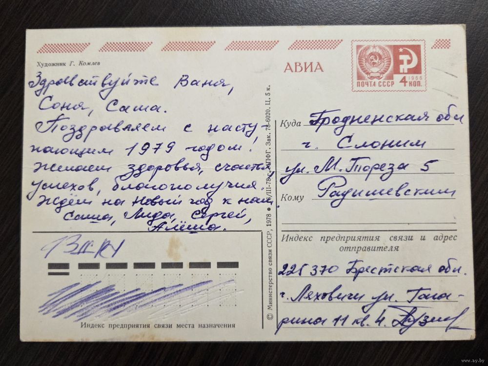 Комлев С Новым годом 1978 подписанная открытка СССР
