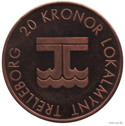 Коммуна Треллеборг. Швеция. 20 крон 2002. Почтовое отделение Треллеборга. Локальная валюта. Законное платёжное средство. 35 мм.