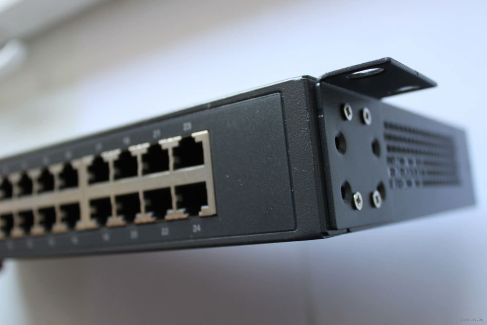 КОМПЛЕКТ: коммутатор, родные петли (уголки с винтами) для монтажа в стойку.