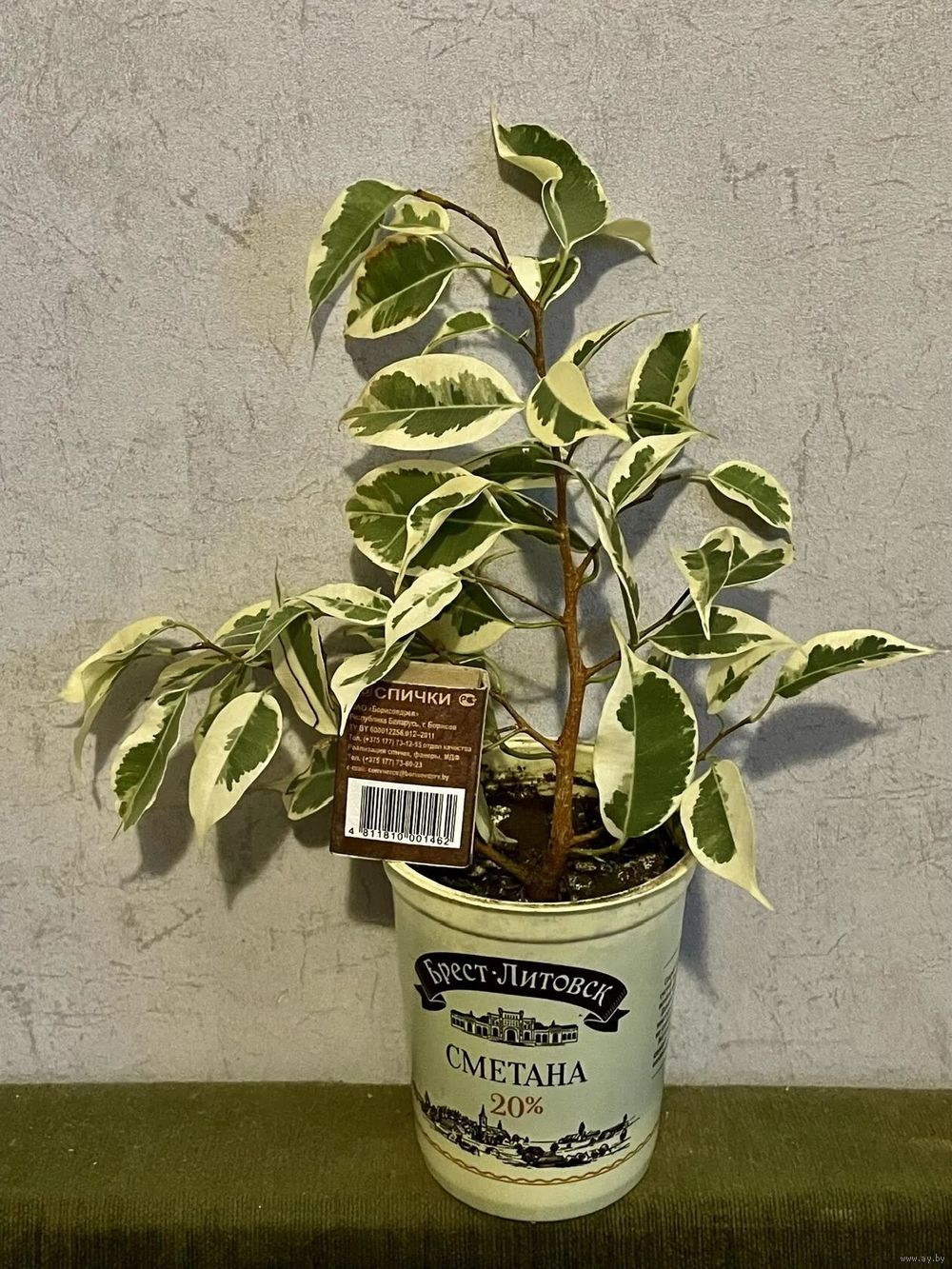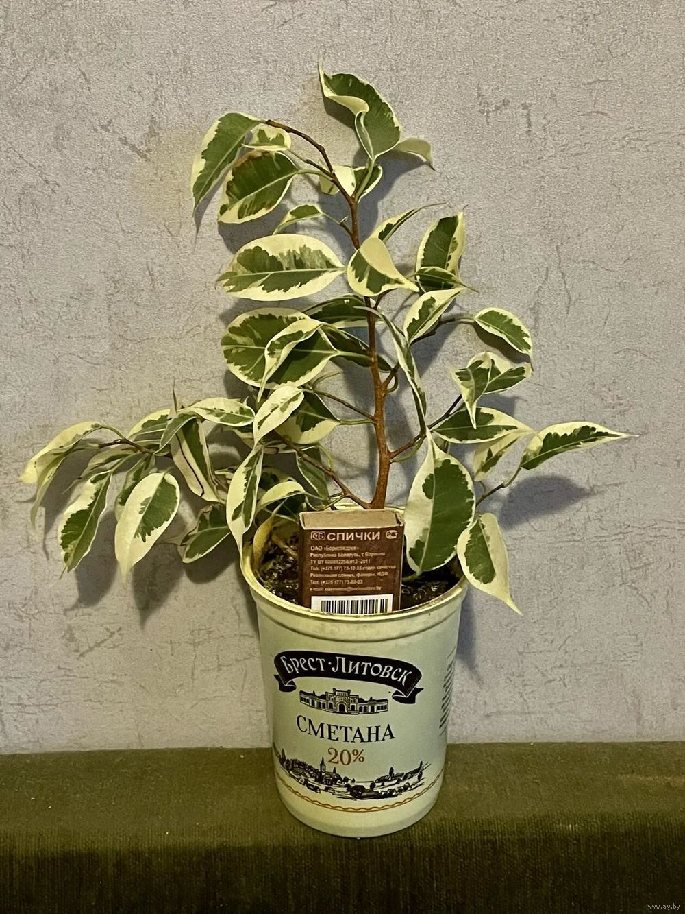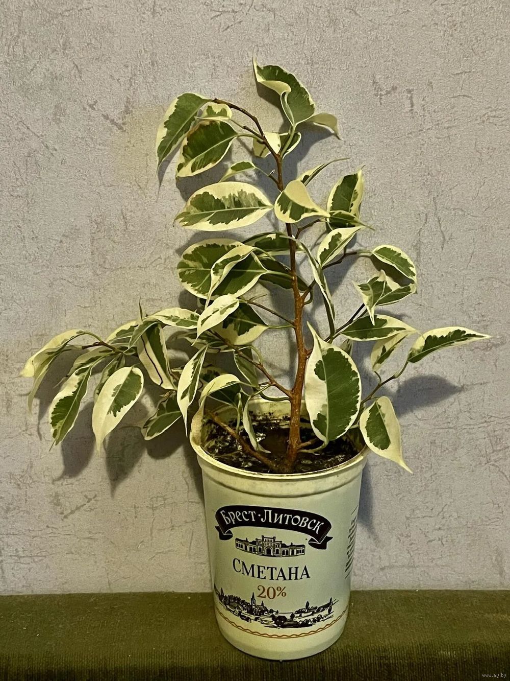 Продам укорененный отросток фикуса Бенджамина вариегатный с фото, а высота 15 см.