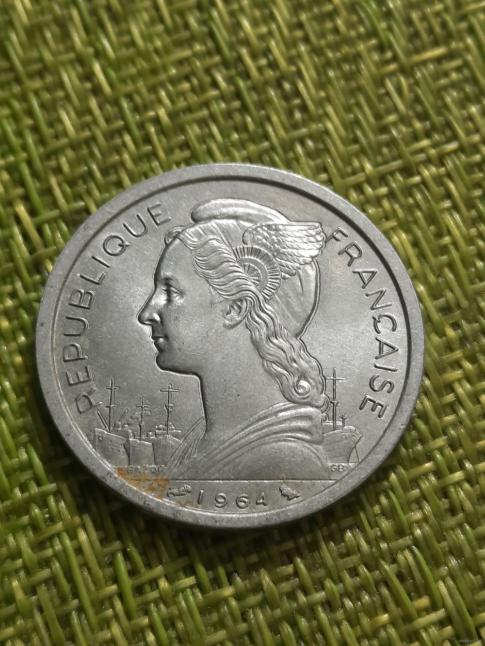 Коморские острова 2 франка 1964 г ( Пальмы Корабли )
