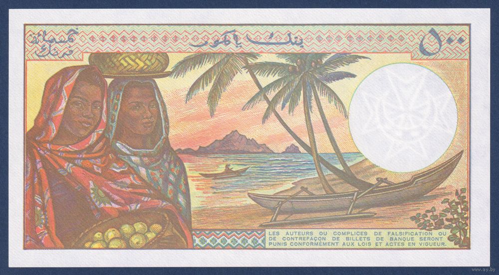 Коморские острова (Коморы), 500 франков 1984-2004 г, P-10b(2) (город Мутсамуду, женщины, лодки), UNC