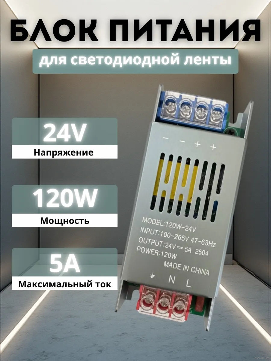Компактный блок питания 120W 24в/5А размеры 115х50х20мм