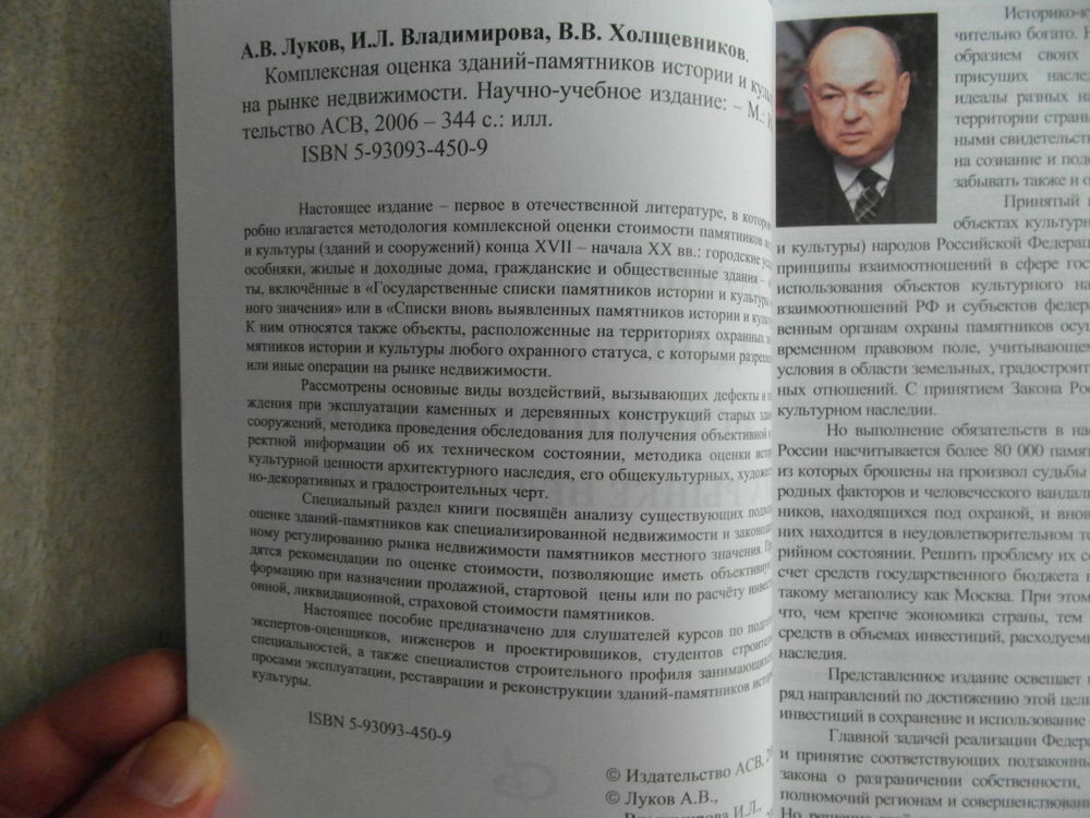 Специальный раздел книги посвящён анализу существующих подходов к оценке зданий-памятников как специализированной недвижимости и законодательному регулированию рынка недвижимости памятников местного значения. Приводятся рекомендации по оценке стоимости, позволяющие иметь объективную информацию при назначении продажной, стартовой цены или по расчёту инвестиционной, ликвидационной, страховой стоимости памятников.