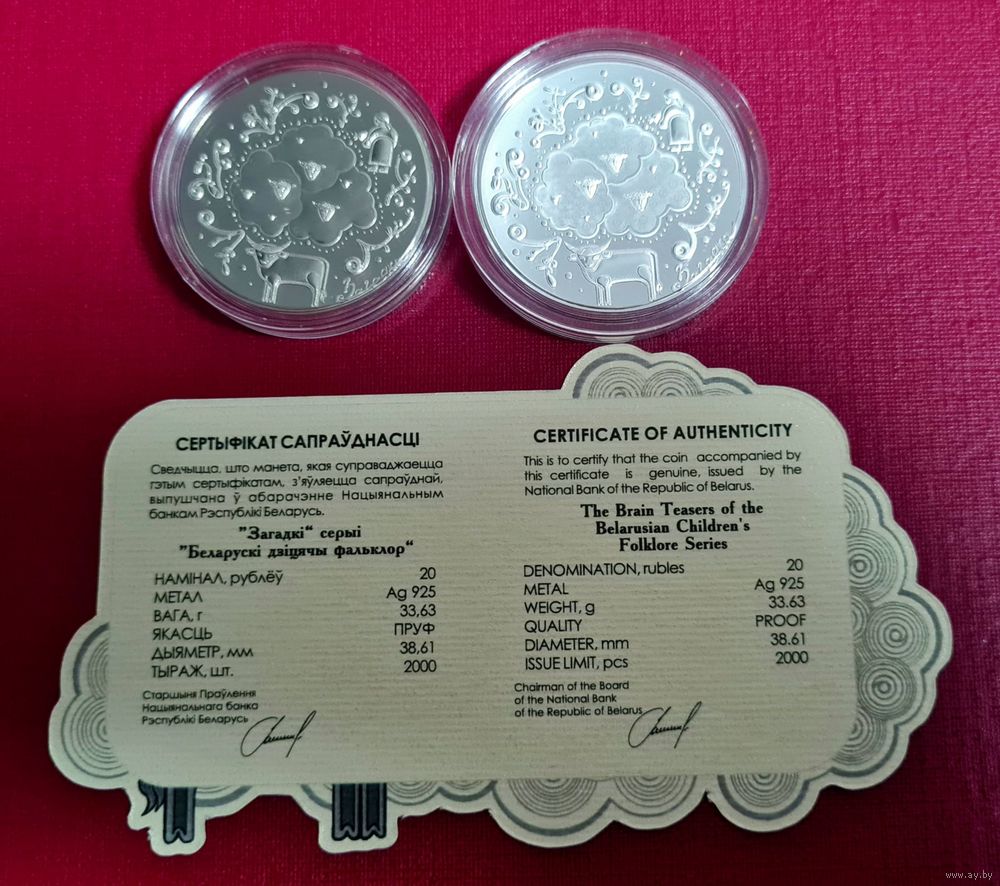 Комплект 20 рублей СЕРЕБРО+1 рубль медно-никель ”Загадки“ серии ”Белорусский детский фольклор“