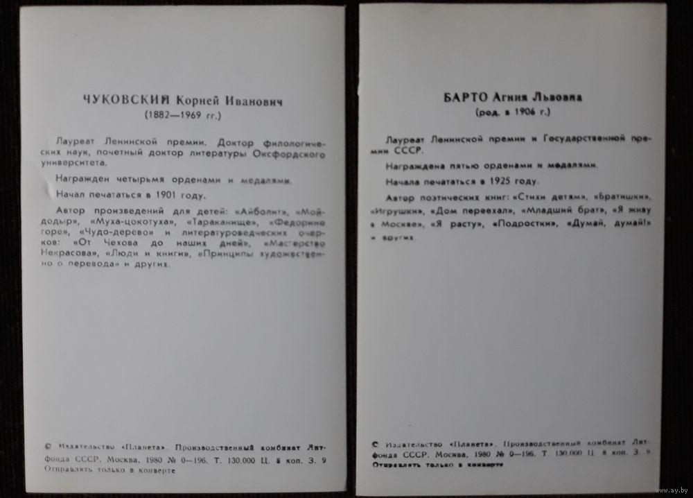 Комплект из 10 открыток (полный) Советские детские писатели 1980