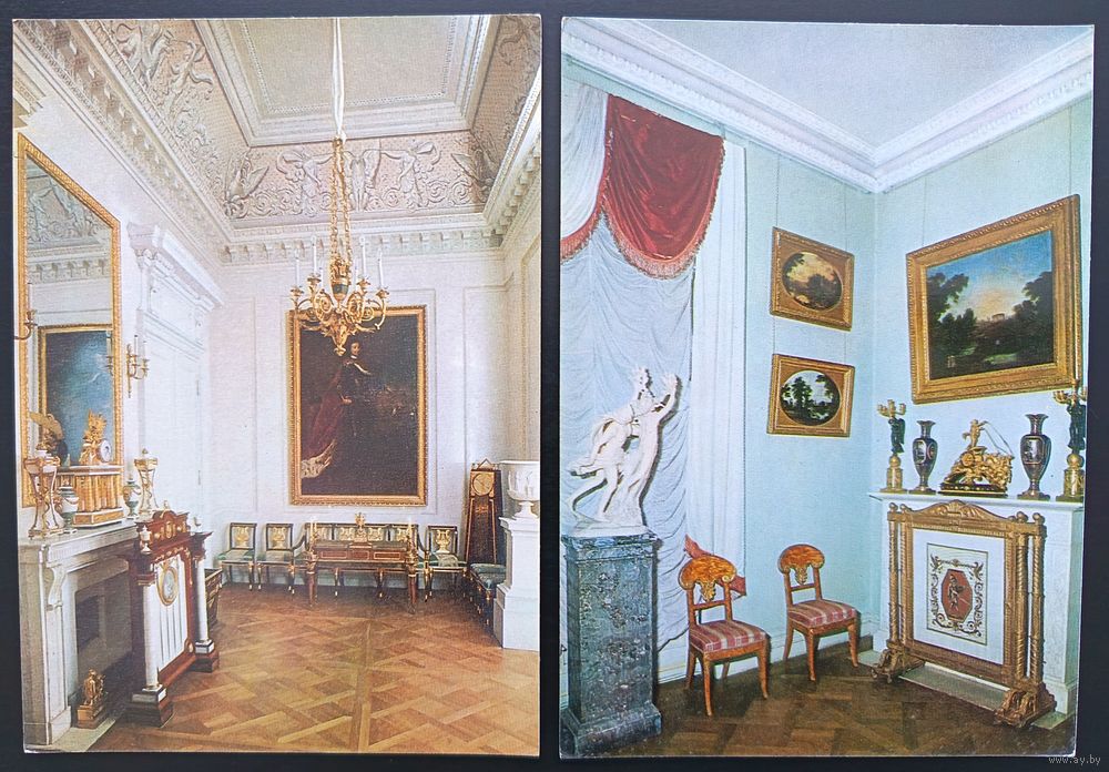 Комплект из 13 открыток (не хватает 3) Павловский дворец-музей Интерьеры 1977