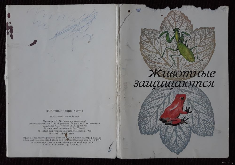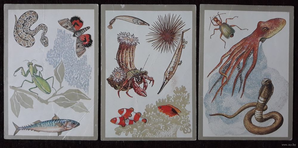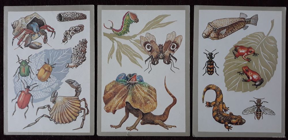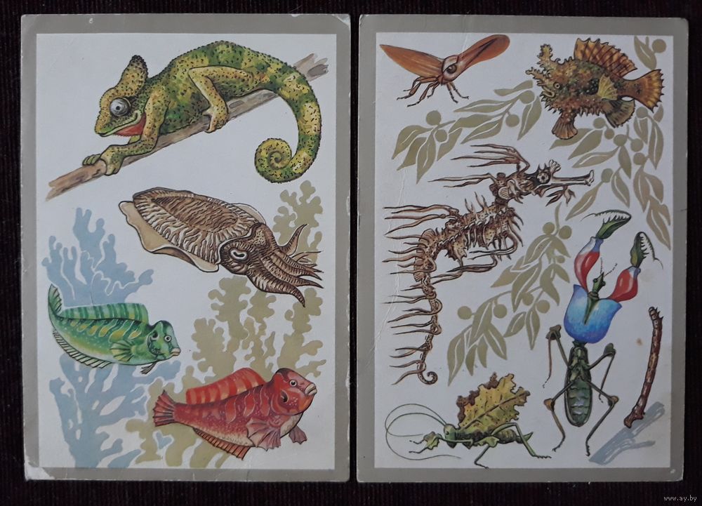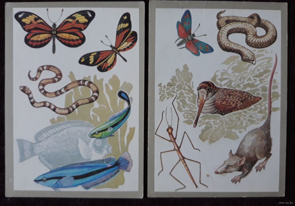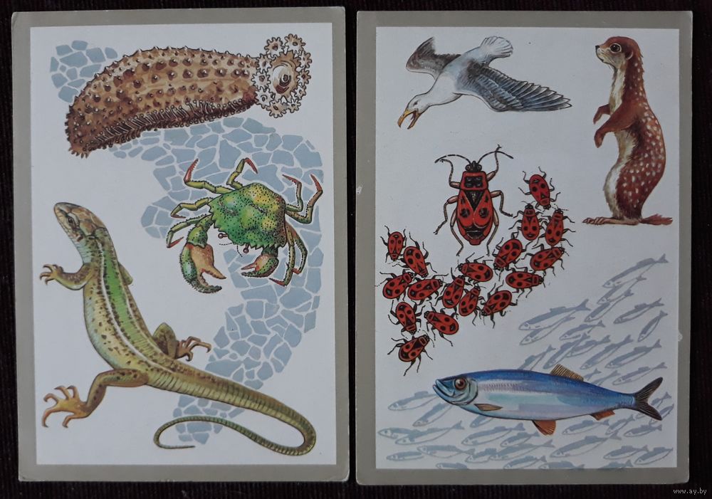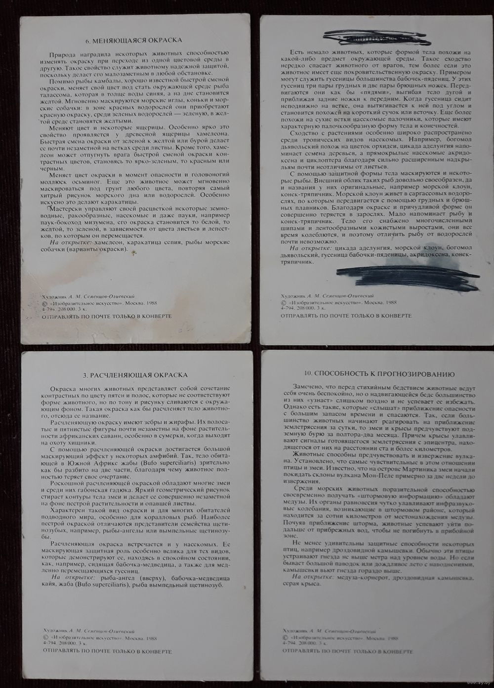 Комплект из 14 открыток (не хватает 2) Животные защищаются 1988